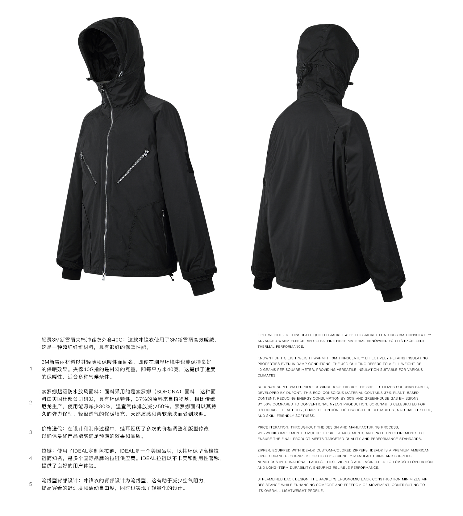 - This shell jacket is insulated with 40g 3M Thinsulate, an ultra-fine microfiber fill known for excellent warmth retention. Even in damp conditions, it maintains reliable insulation while remaining light and flexible. The SORONA performance fabric provides superior waterproof protection, produced with plant-based materials that reduce energy use and emissions. It offers lasting elasticity, breathability, and a soft, skin-friendly touch.