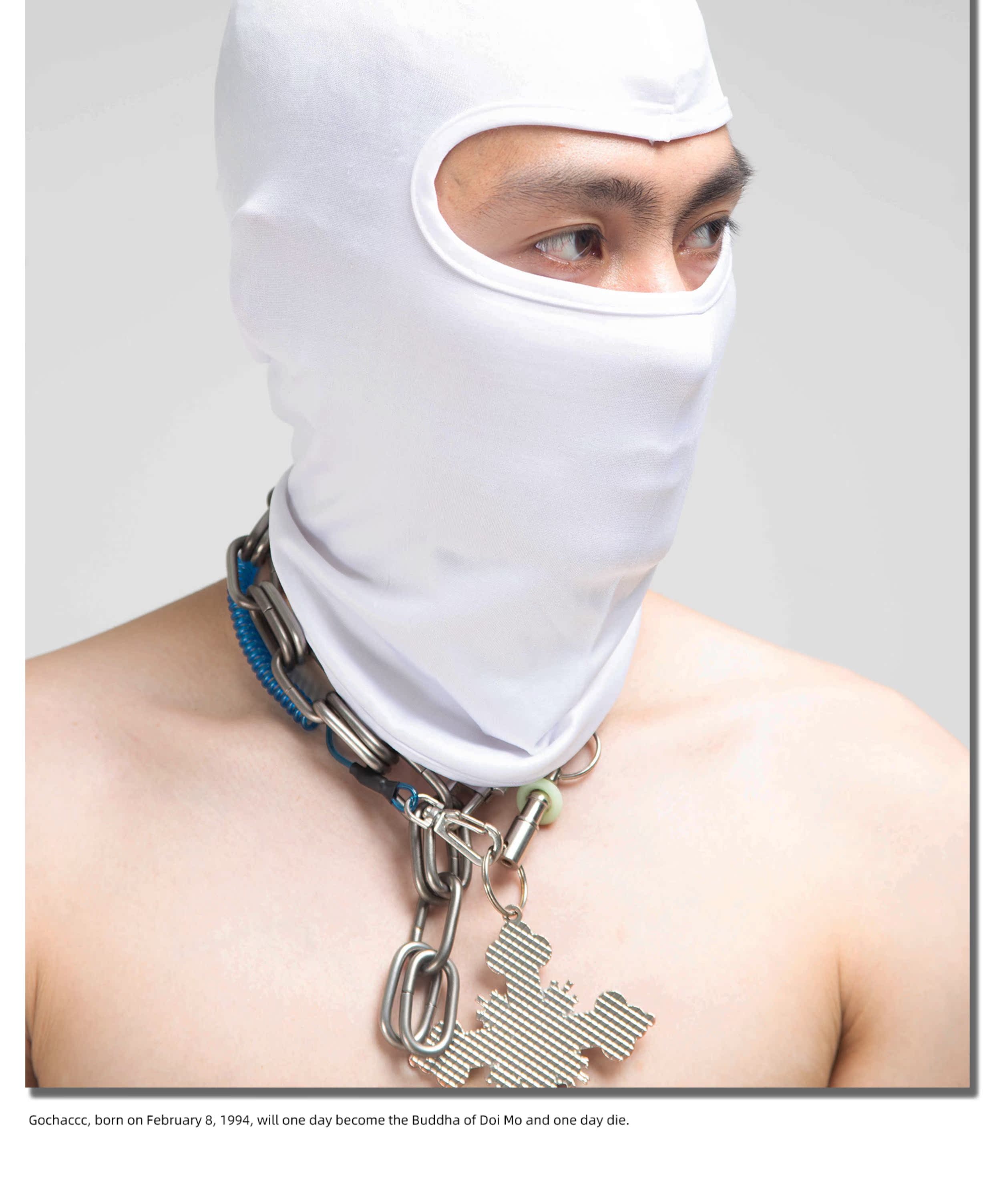 - A protective sun hood made from 100% polyester, featuring a single-eye opening for a bold utilitarian look. Presented in both black and white, the piece carries the signature Love and Death logo, merging functionality with dark graphic identity.