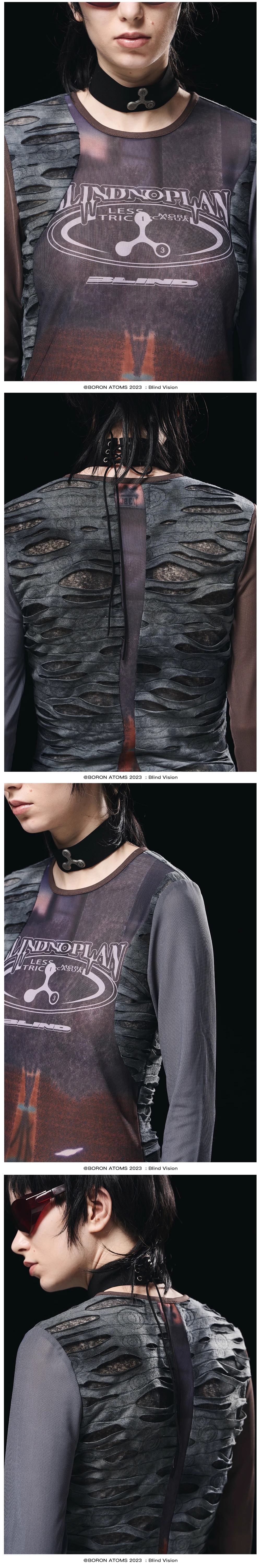 - Combining mesh fabric with distressed washed texture fabric, the mesh features original digital printing, creating a strong overall texture and rich visual appeal.