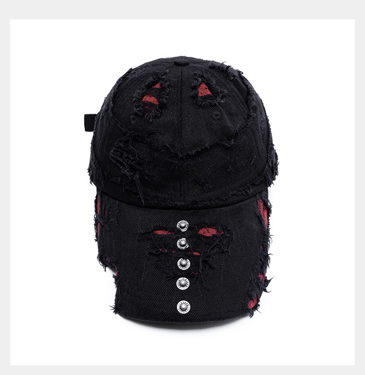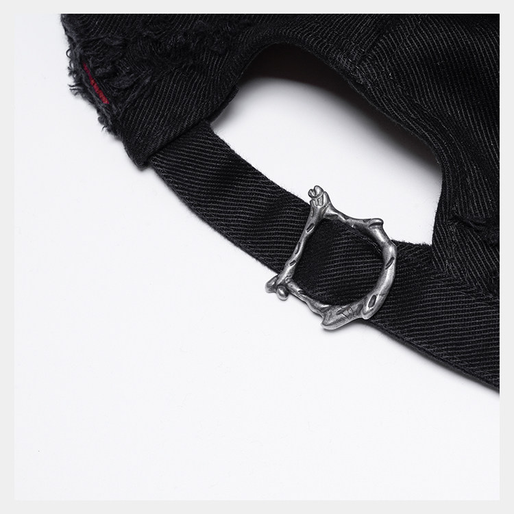 • Featuring a vintage military-inspired silhouette with an oversized brim to better frame facial proportions. The cap body undergoes hand-distressed treatment, revealing a contrasting underlayer for visual impact. Custom hardware arranged along the brim and irregular cut-out designs embody D5OVE's distinct post-apocalyptic aesthetic. Made from a cotton-Tencel blend with a brushed hand-feel for comfort and breathability, while the Tencel blend enhances moisture-wicking. The inner layer uses a contrasting textured cotton fabric, offering rich texture and strong breathability.