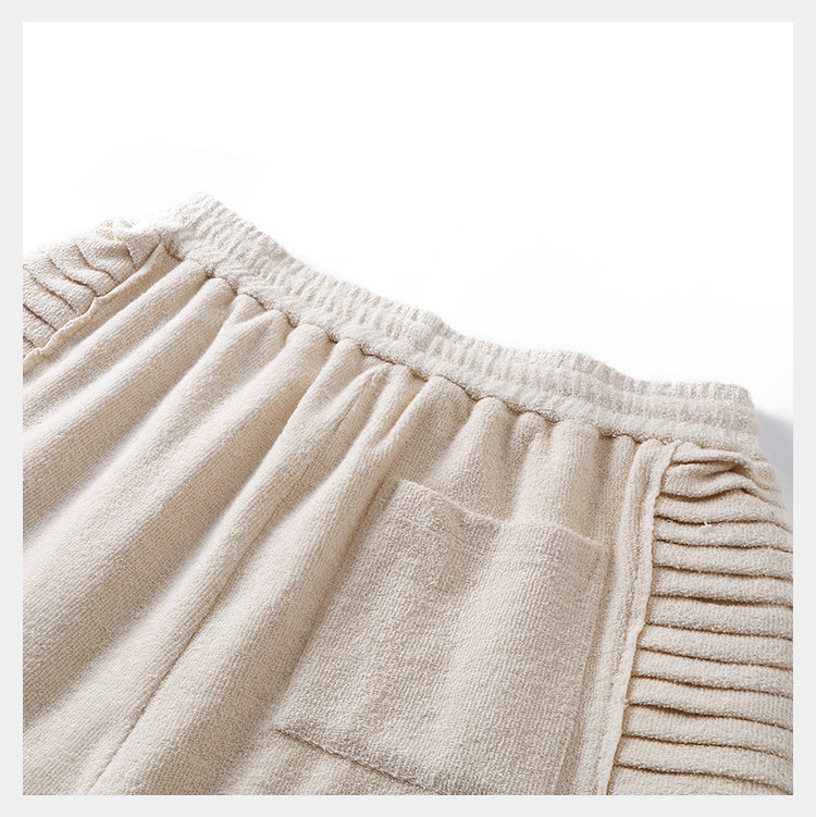 • Following D5OVE's classic cropped wide‑leg silhouette for a relaxed, effortless look that enhances leg proportions. Features an elastic drawcord waist and zippered pockets for everyday functionality. Raw‑edge detailing and an irregular hem create a distinctively laid‑back visual, while pleated accents on both sides add visual texture. Made from a premium blend of cotton and kapok, offering a soft, fine hand‑feel, elevated texture, and skin‑friendly comfort. The kapok enhances moisture‑wicking, breathability, and fabric durability.