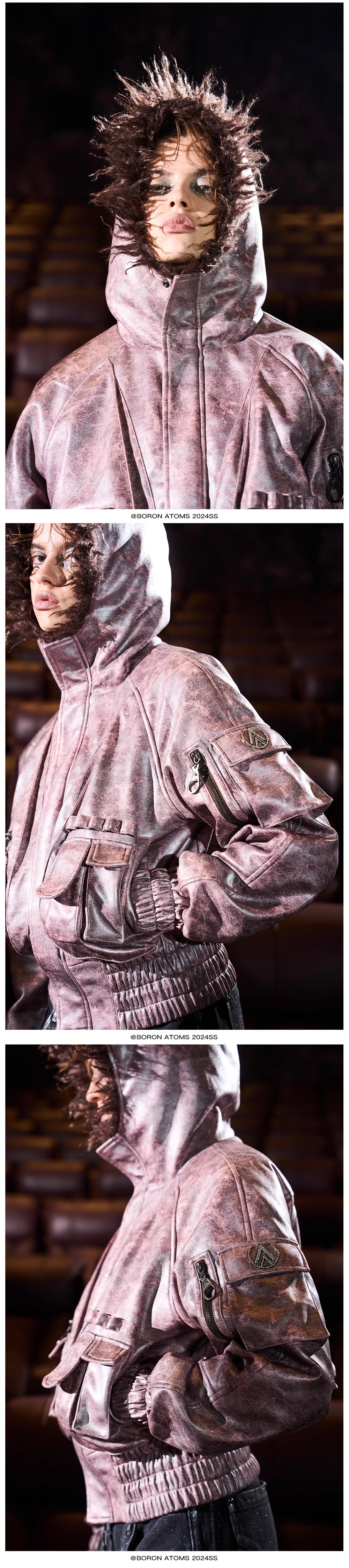 - This garment features a shorter silhouette that incorporates utility elements. The hem and cuffs are designed with wide ribbing, enhancing the structure and fit. The fabric undergoes a special process to improve its overall texture, resulting in a superior feel. It is lined with quilted cotton for added warmth, and the hood is accented with plush fabric, making it even more cozy and comfortable.