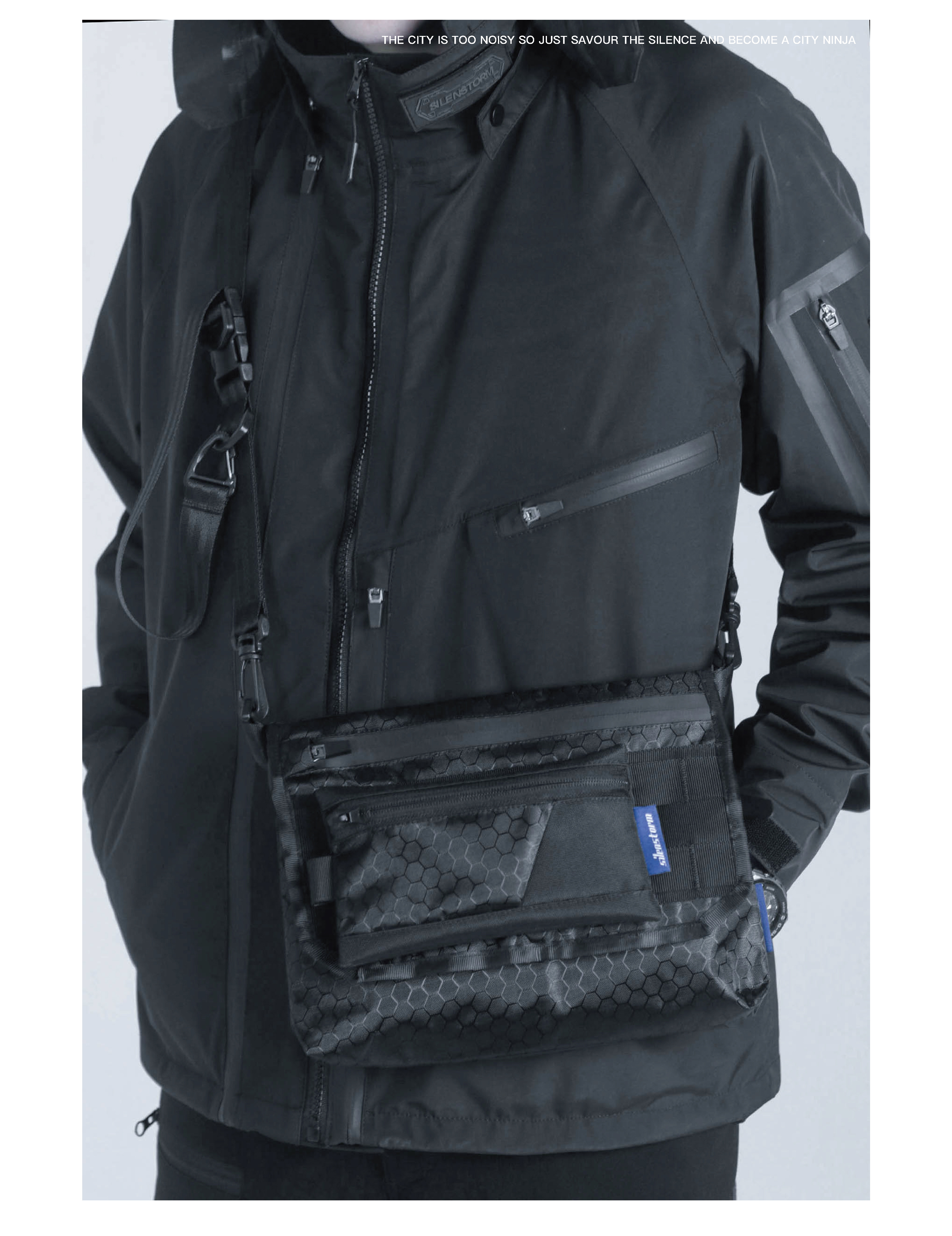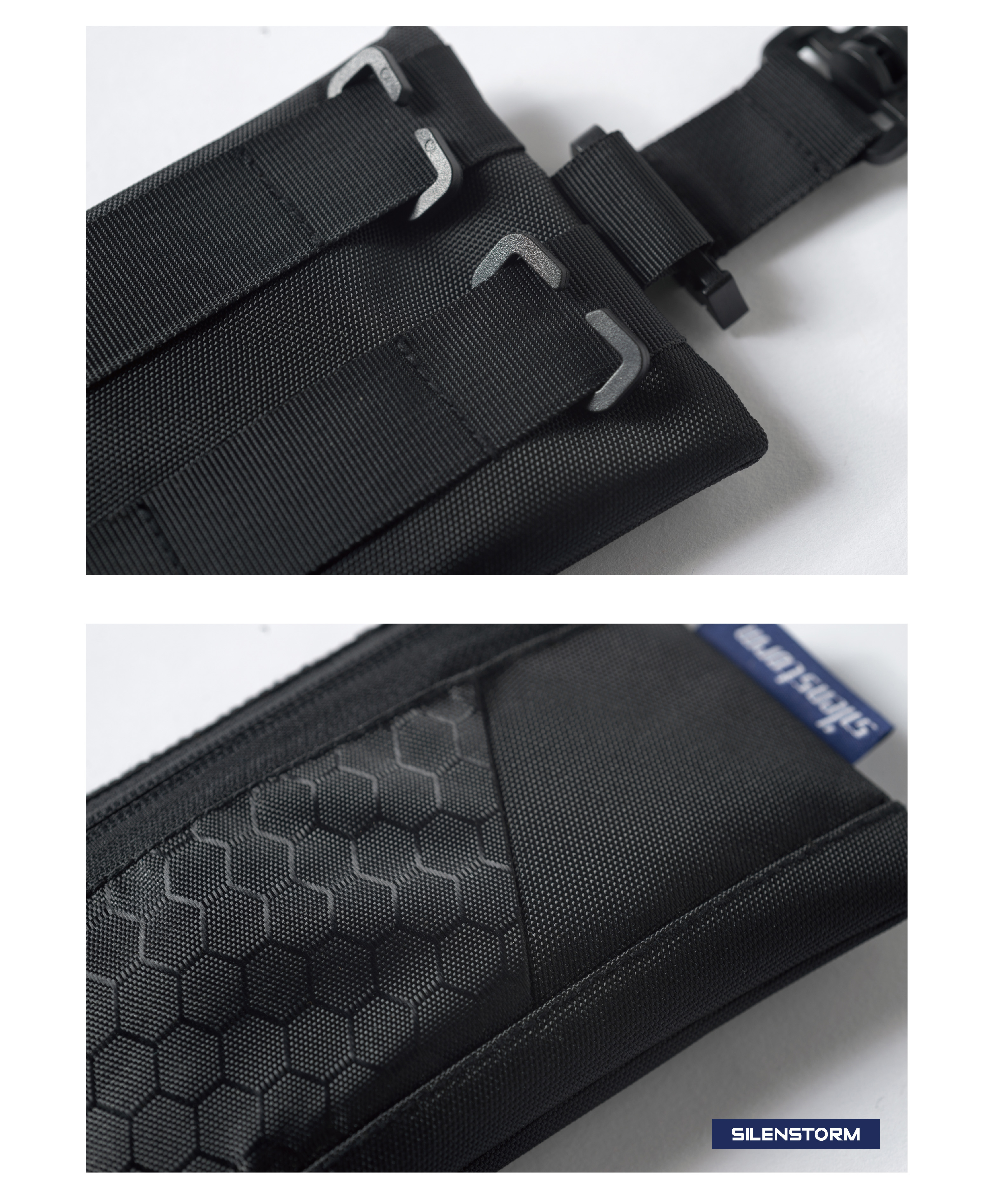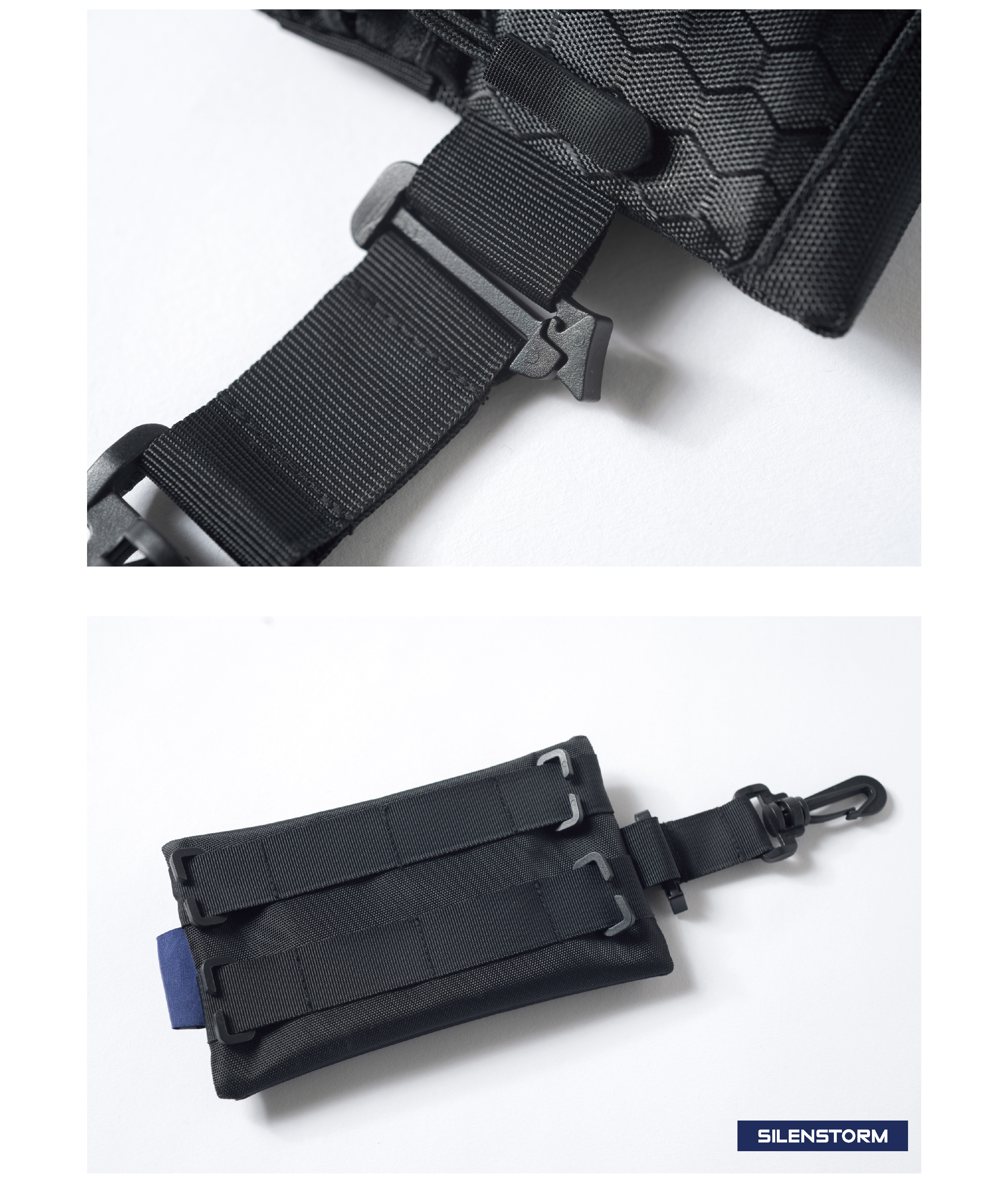 - Made with a combination of 600D waterproof canvas and 420D honeycomb-textured PVC fabric, this kit offers excellent durability, water resistance, and a structured texture. Designed with the MOLLE system, it allows users to freely assemble and customize their gear, providing infinite possibilities for functional setups and urban techwear styling. Both playful and practical, this modular kit ensures a unique and highly personalized wearing experience, balancing functionality with individuality.