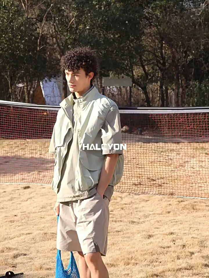 Windproof stand collar with front piece large leaf design, splicing color contrast breathable mesh cloth, add protection and playability.