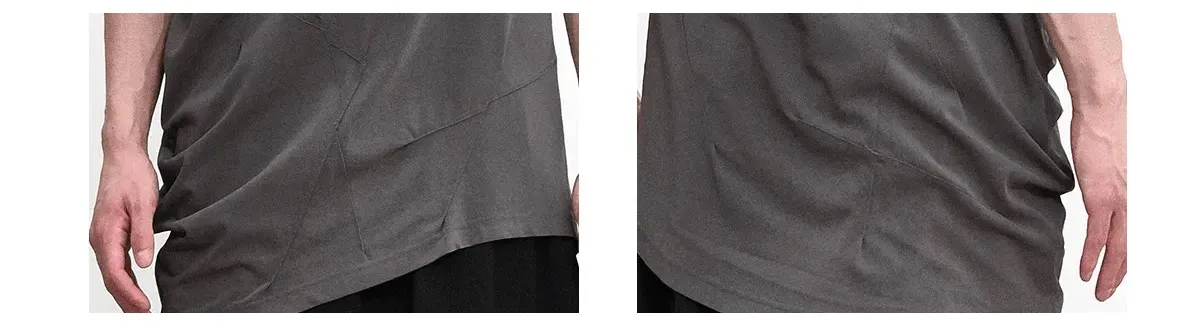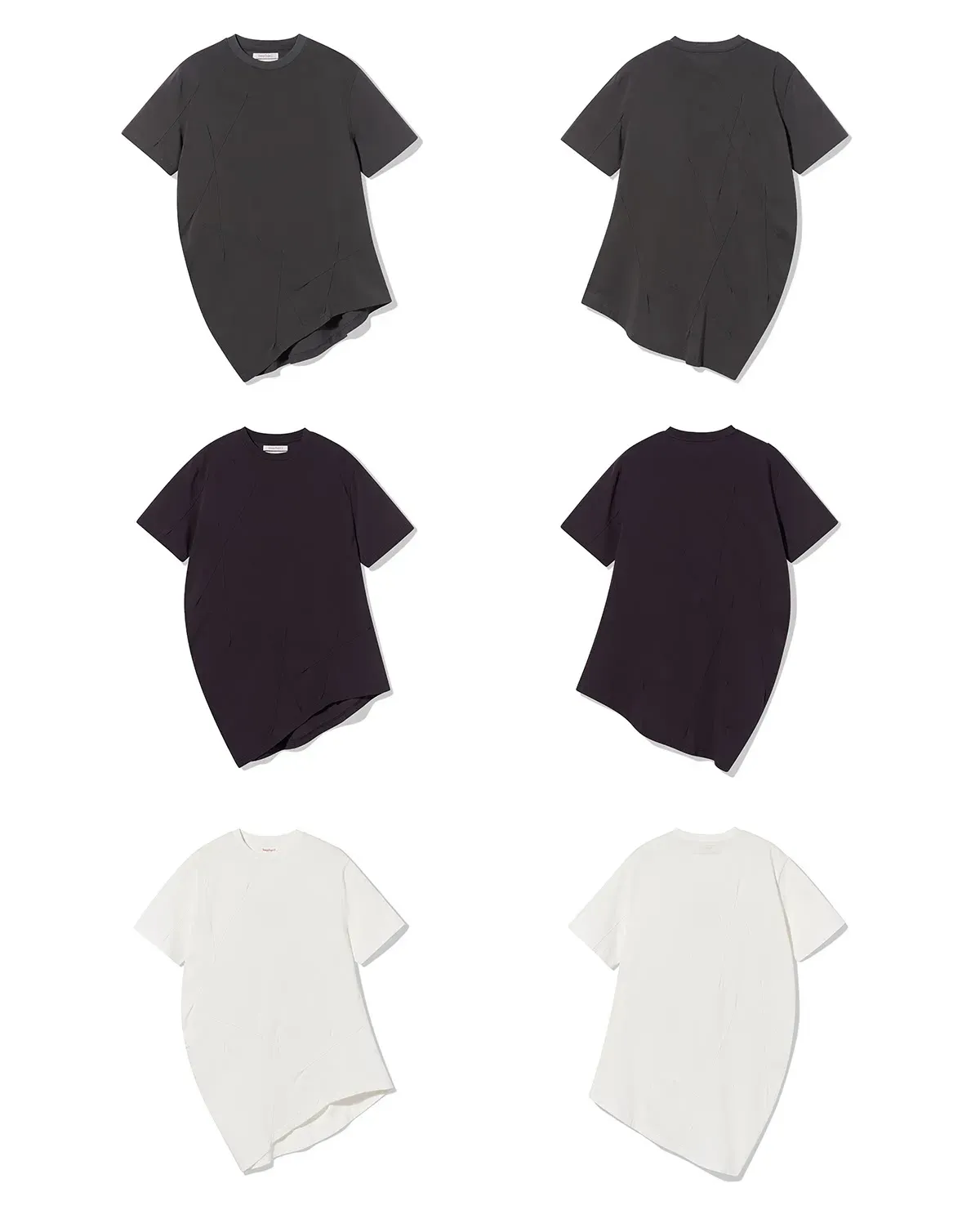 Through structural manipulation, this garment captures a moment of human movement. - Fitted, set-in shoulder silhouette - Ribbed crewneck - Asymmetric cut - 100% cotton fabric