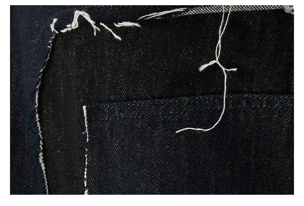 Design Details: The loose silhouette is crafted by reconstructing raw denim in different shades through a remake design. Finished with exposed frayed stitching, the pants create a deconstructed and structural visual effect.