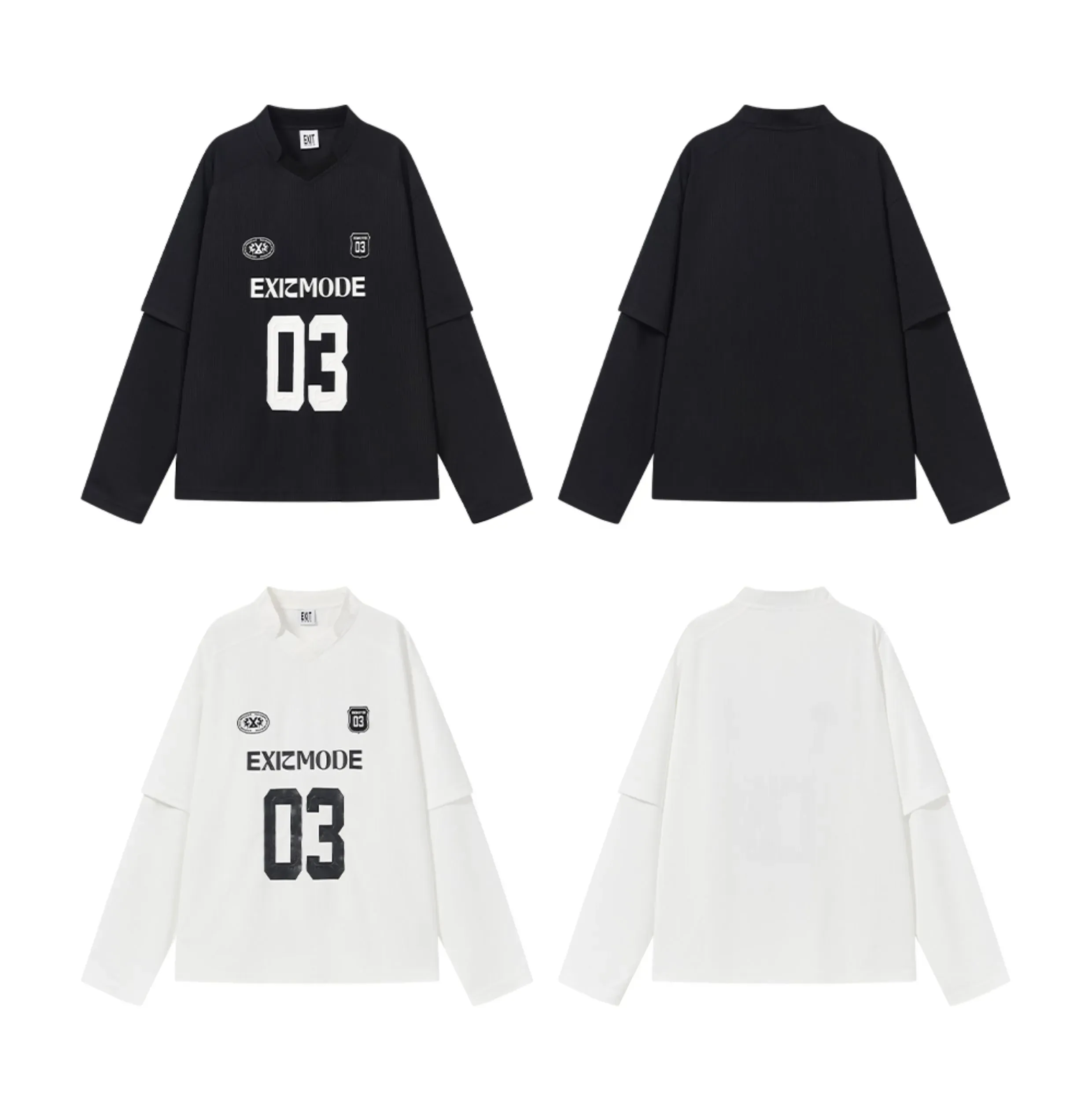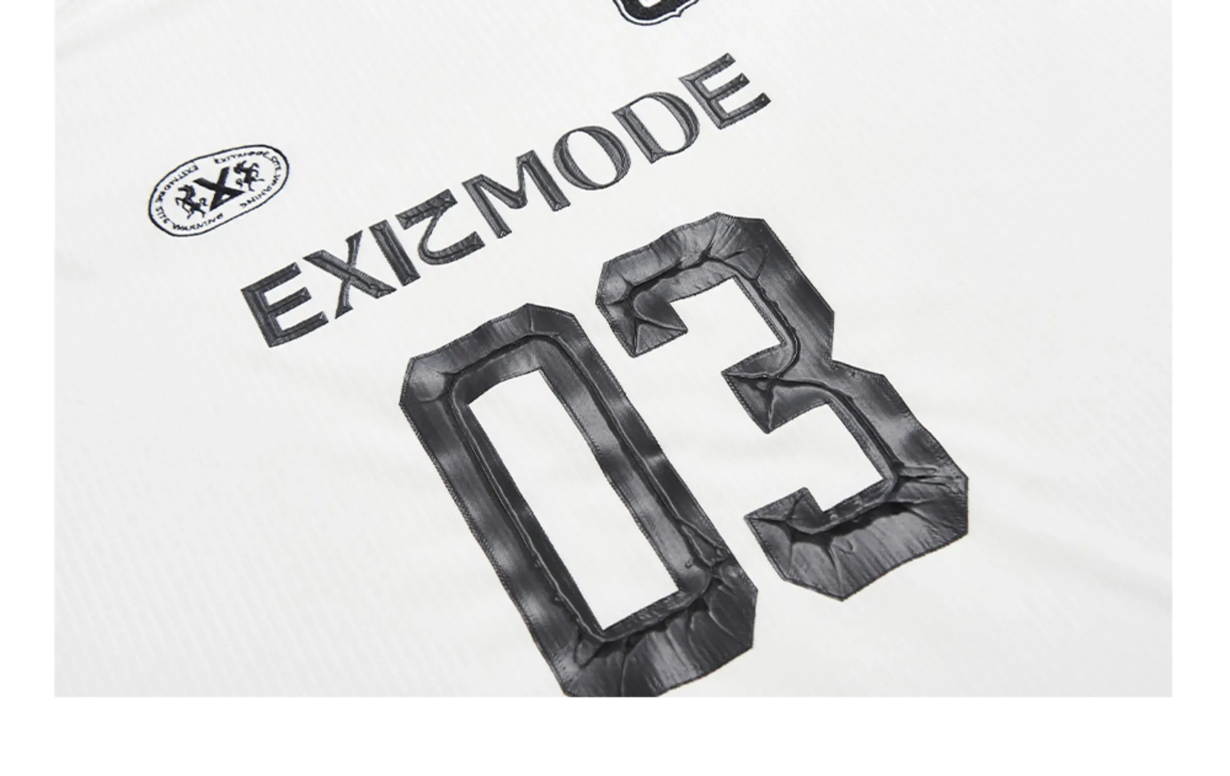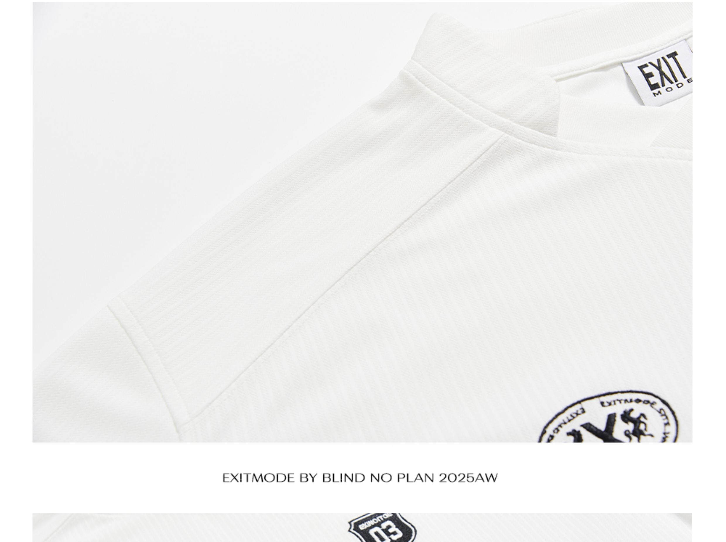 Design Details: This loose-fit T-shirt takes inspiration from classic jerseys, featuring a layered two-piece design. The striped fabric is highlighted with three-dimensional puff print and embroidery, creating a retro sports aesthetic with rich texture and detail.