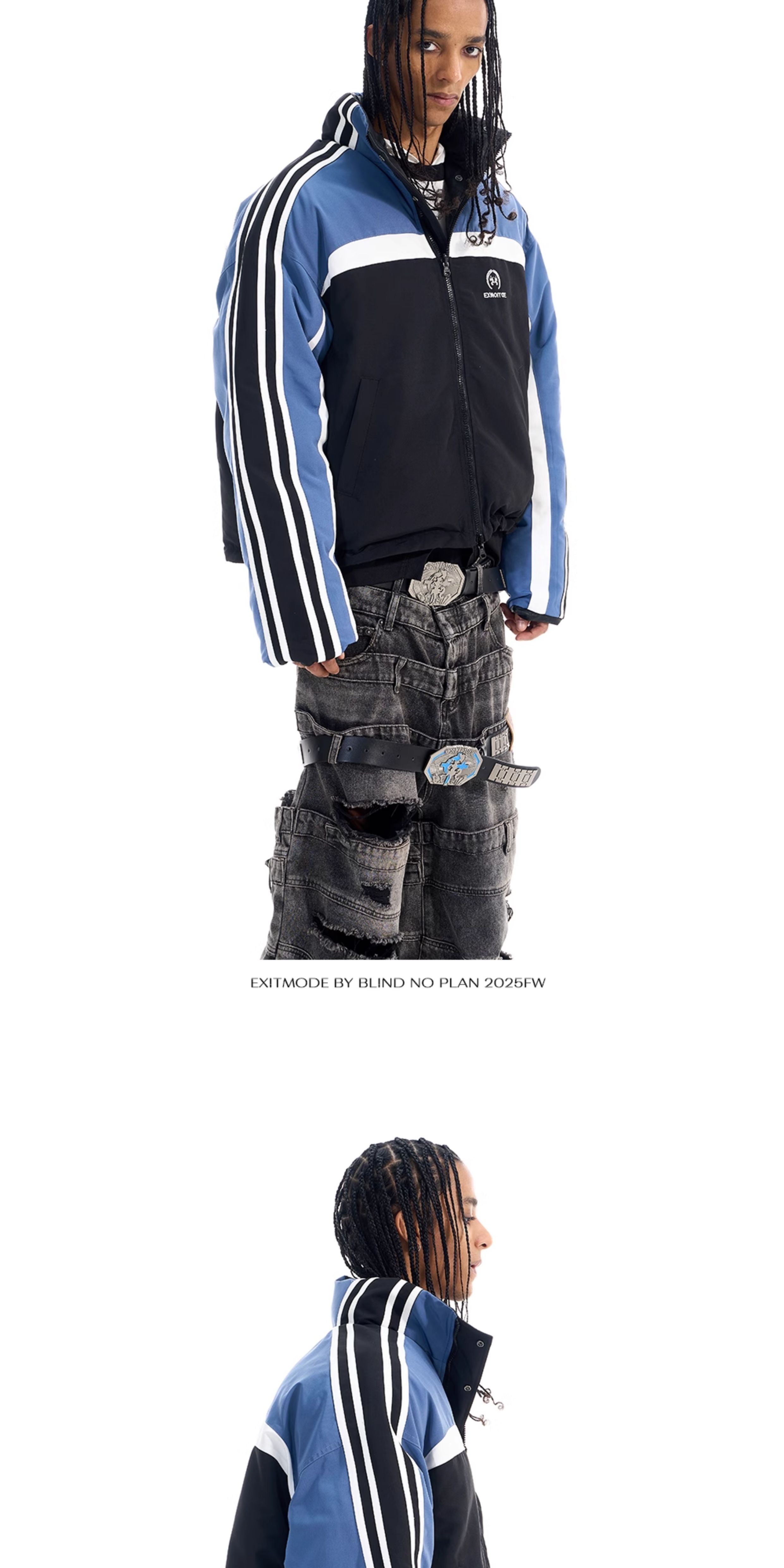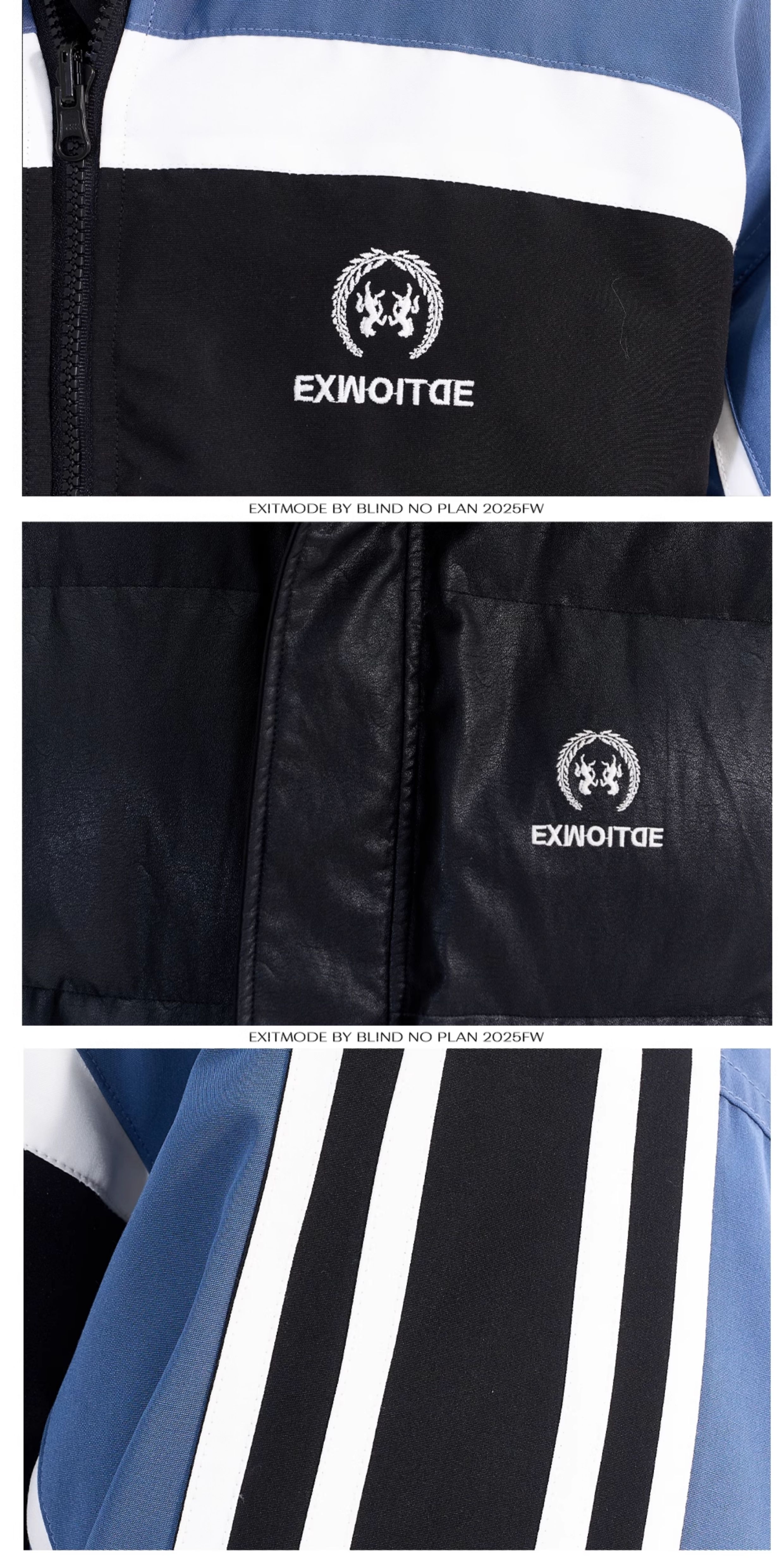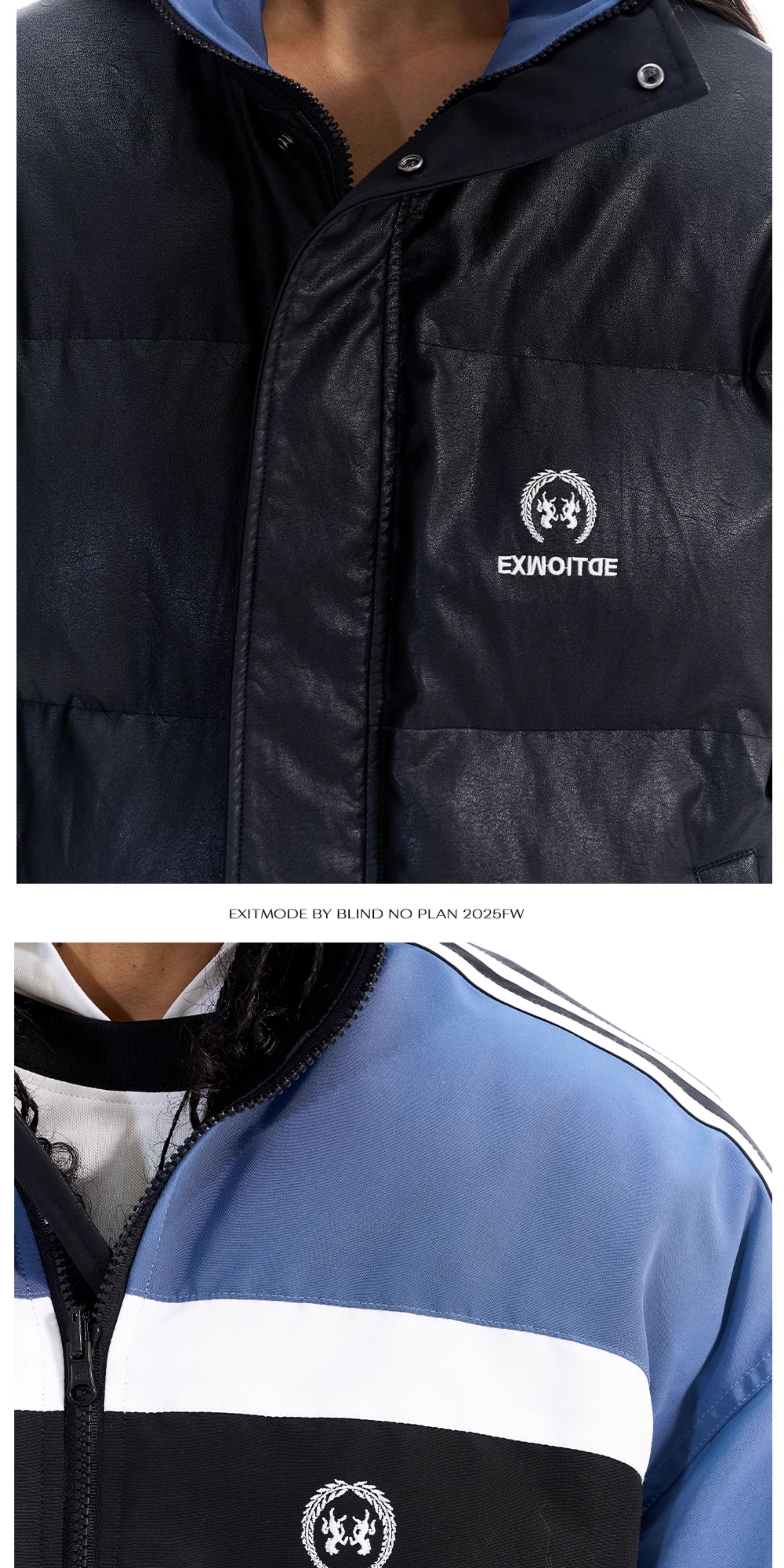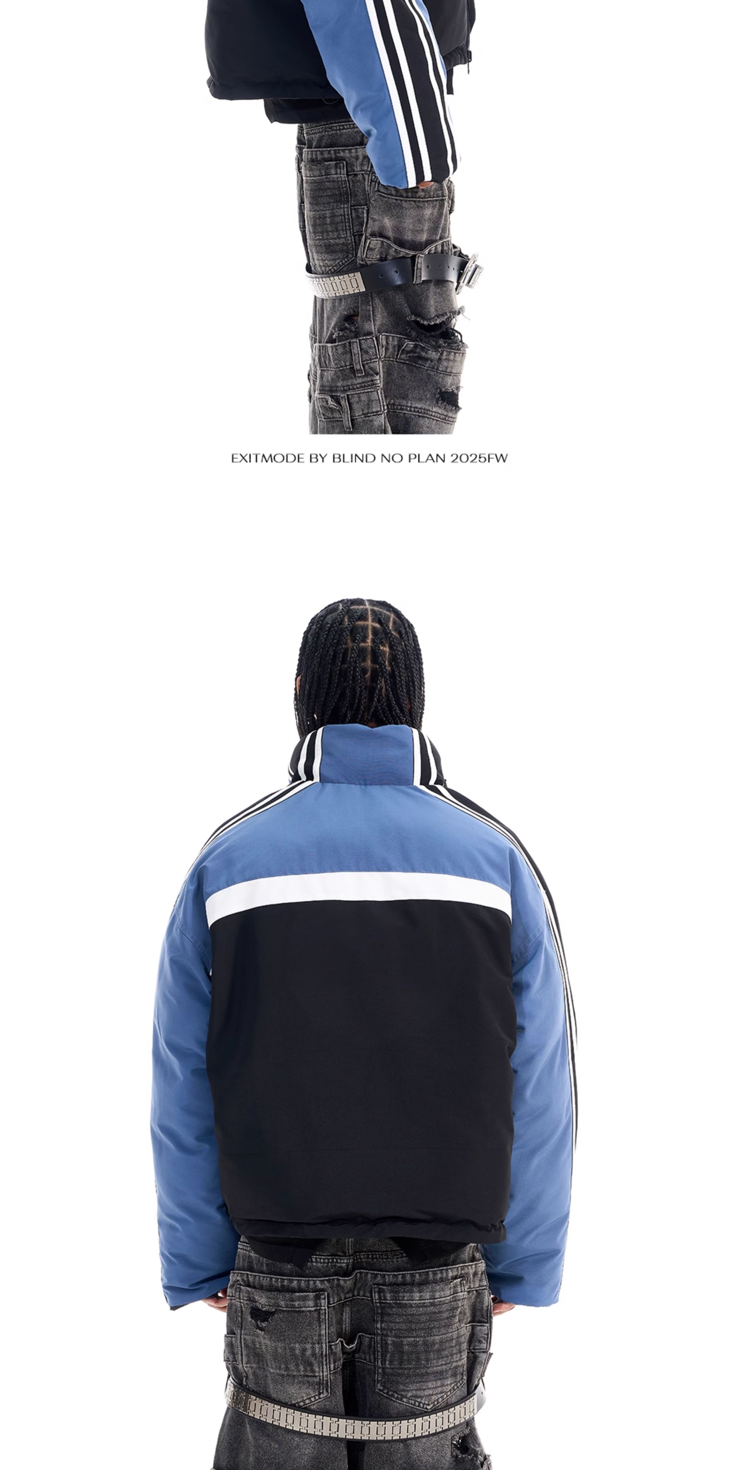 - This jacket features a relaxed oversized fit and offers dual-sided wear. One side presents a clean, versatile look, while the reverse showcases sporty colorblock panels. Embroidery accents add refined detail, making it both functional and stylish.