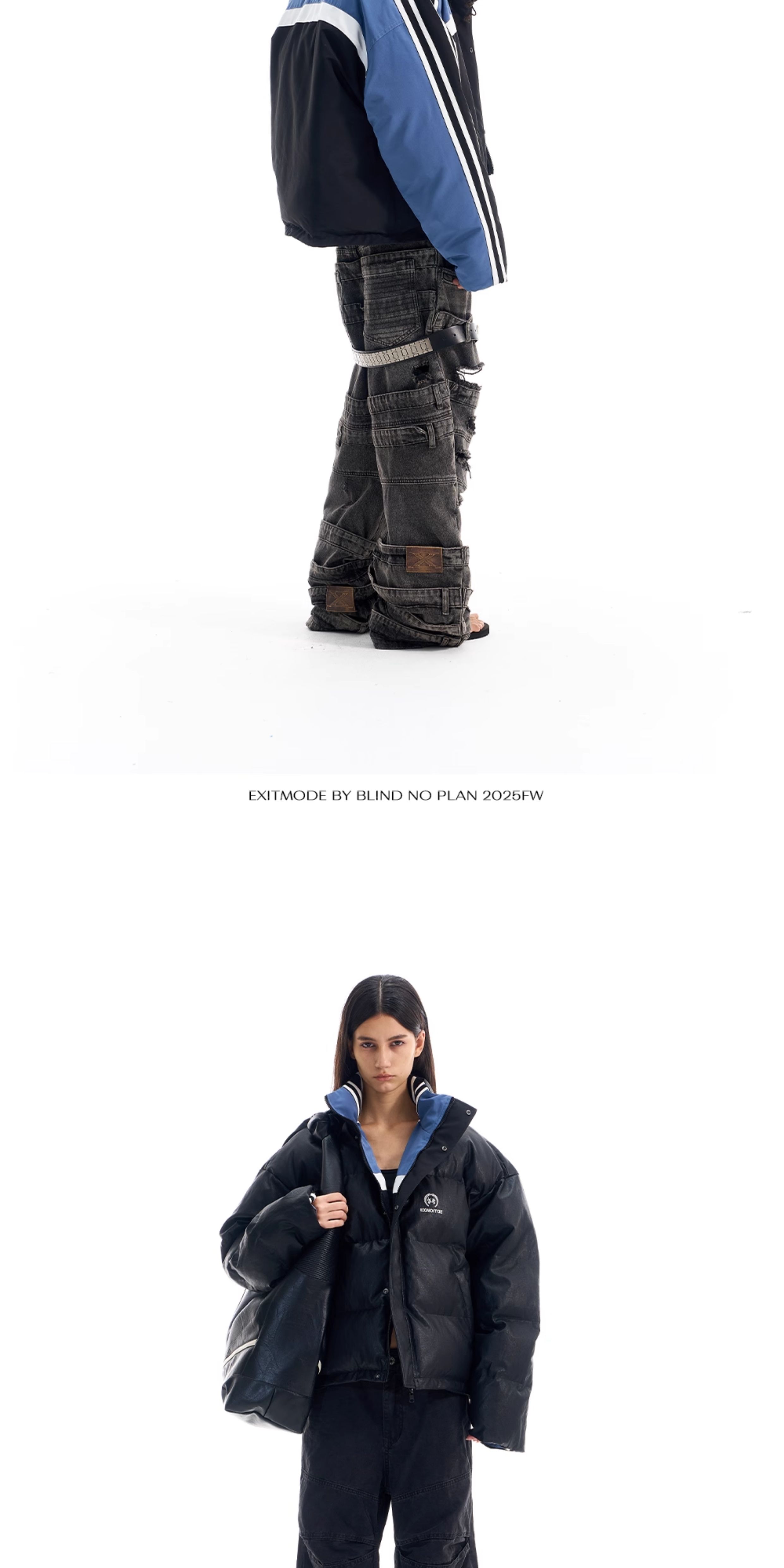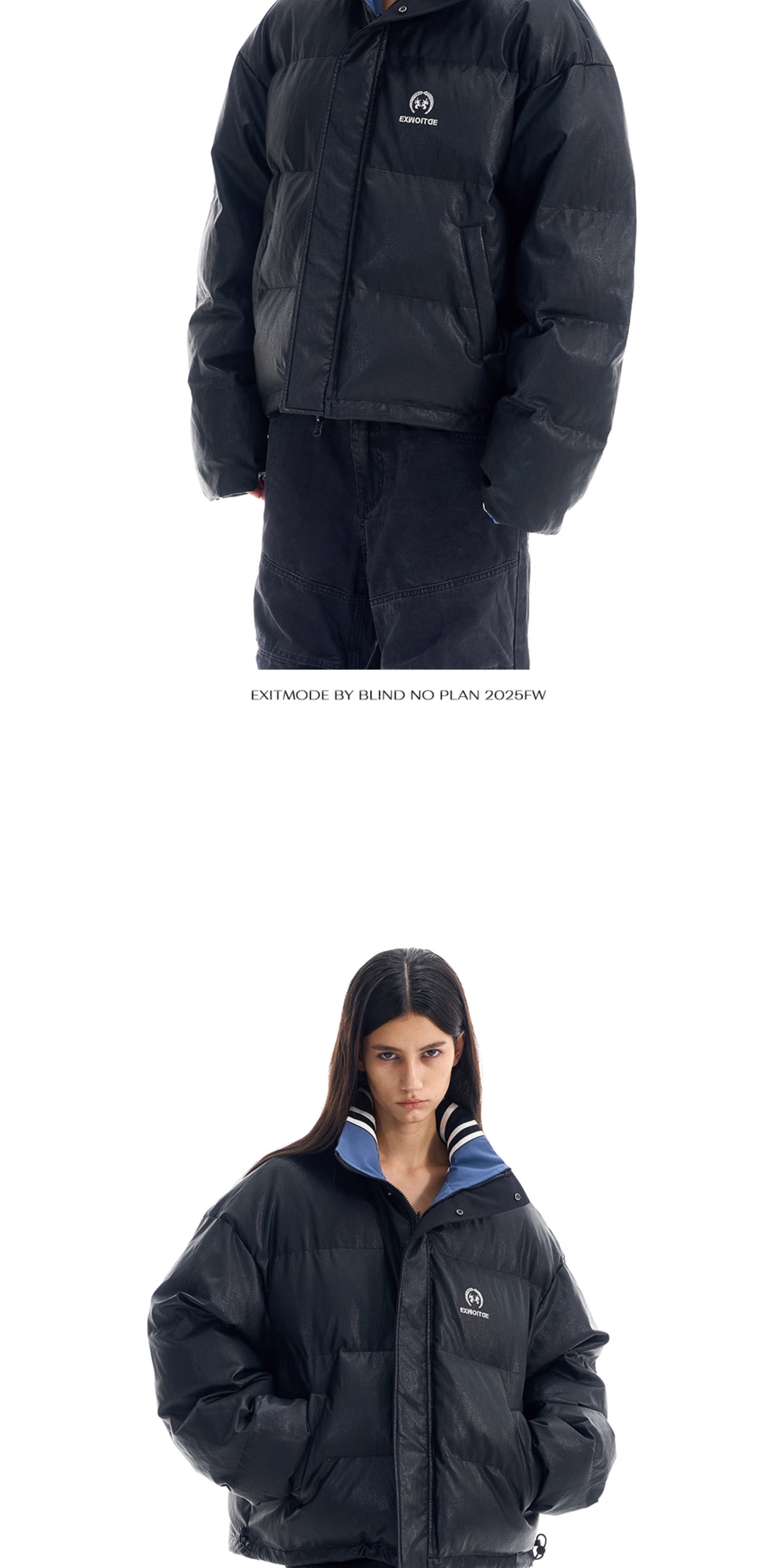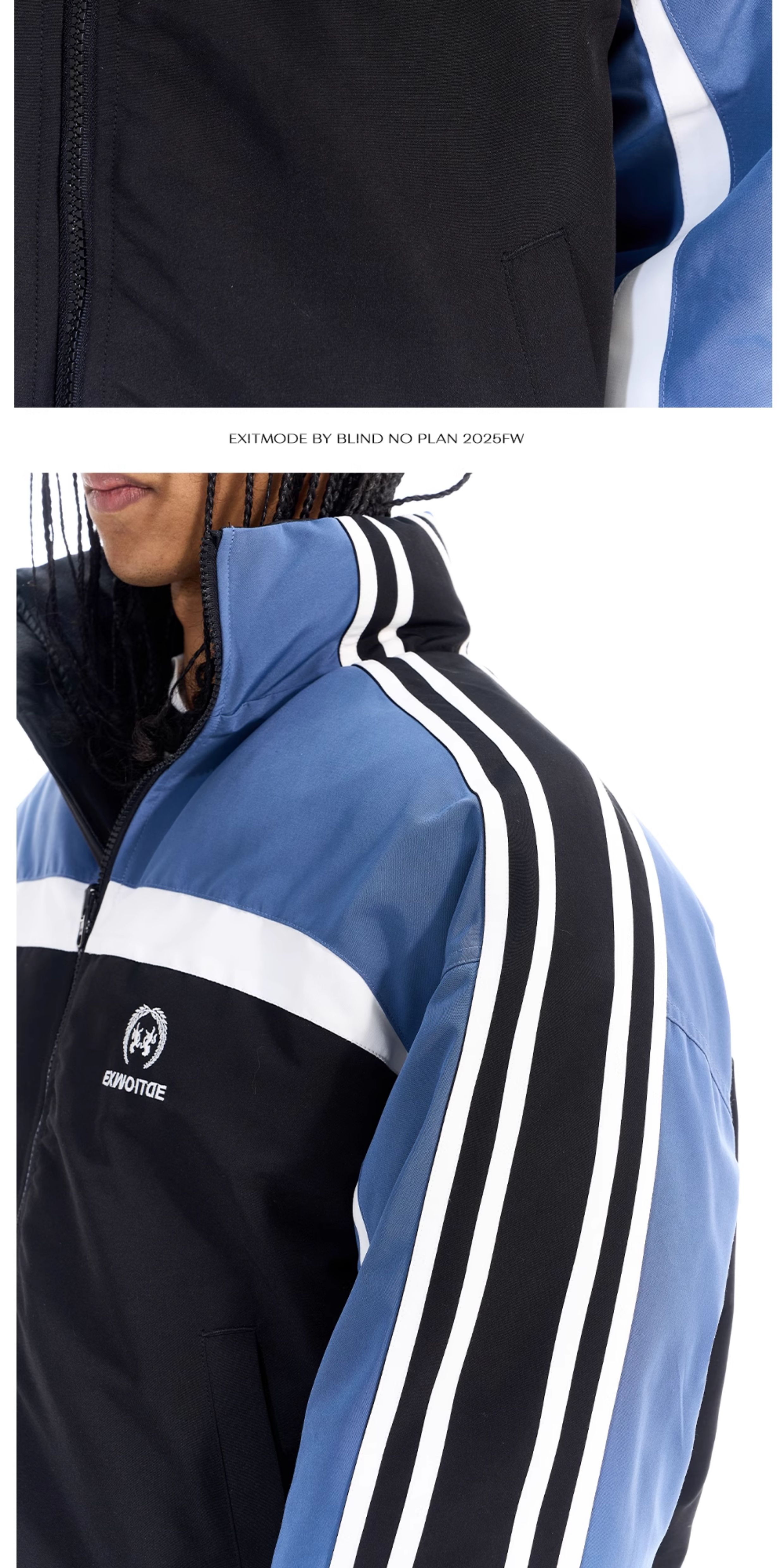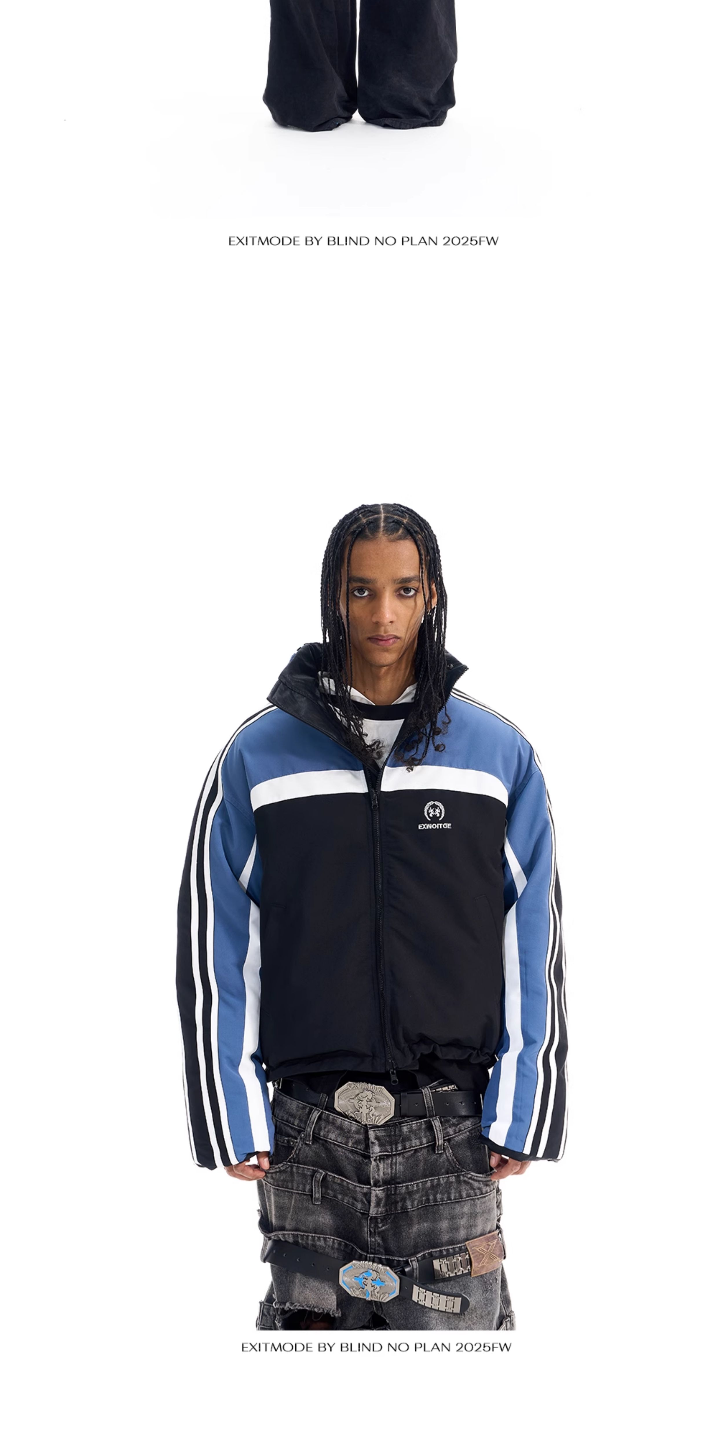 - This jacket features a relaxed oversized fit and offers dual-sided wear. One side presents a clean, versatile look, while the reverse showcases sporty colorblock panels. Embroidery accents add refined detail, making it both functional and stylish.