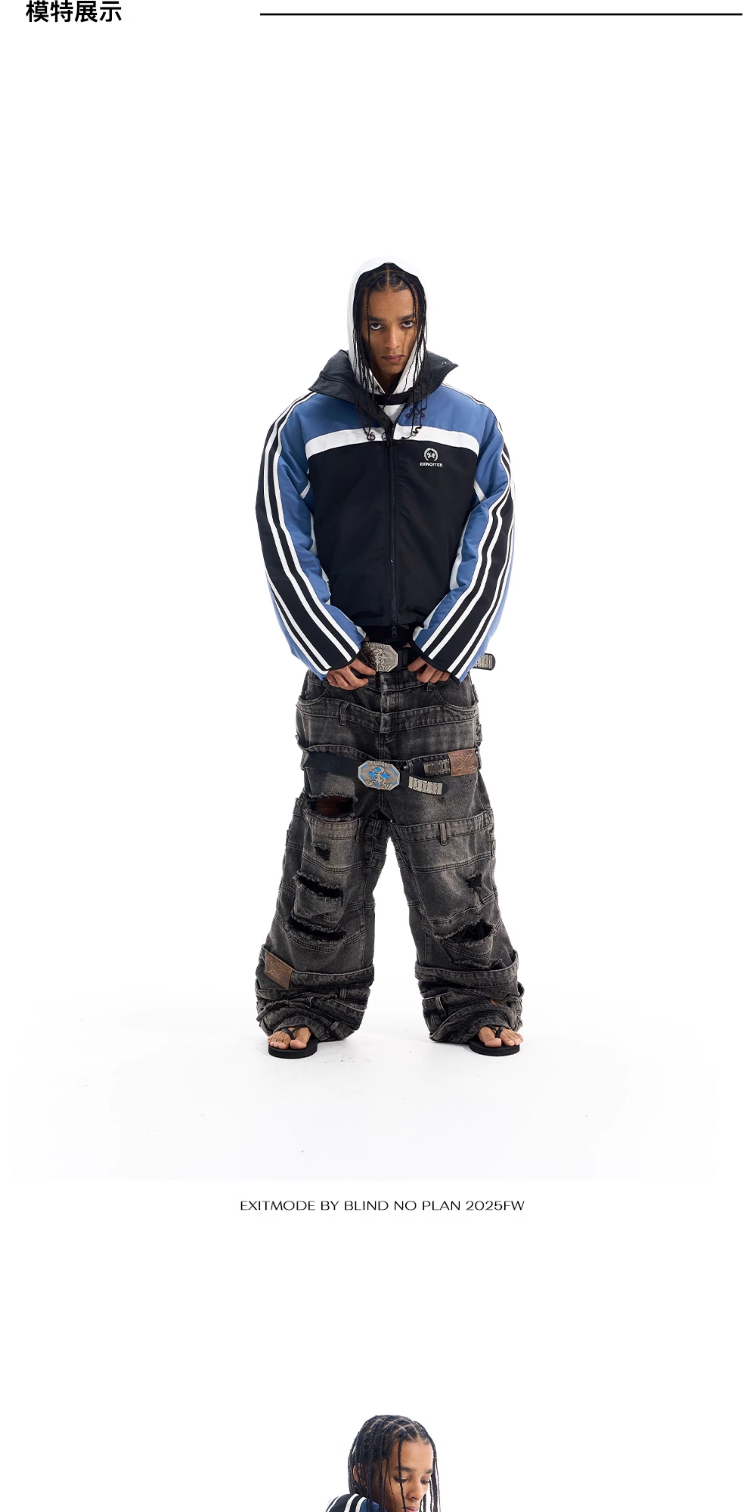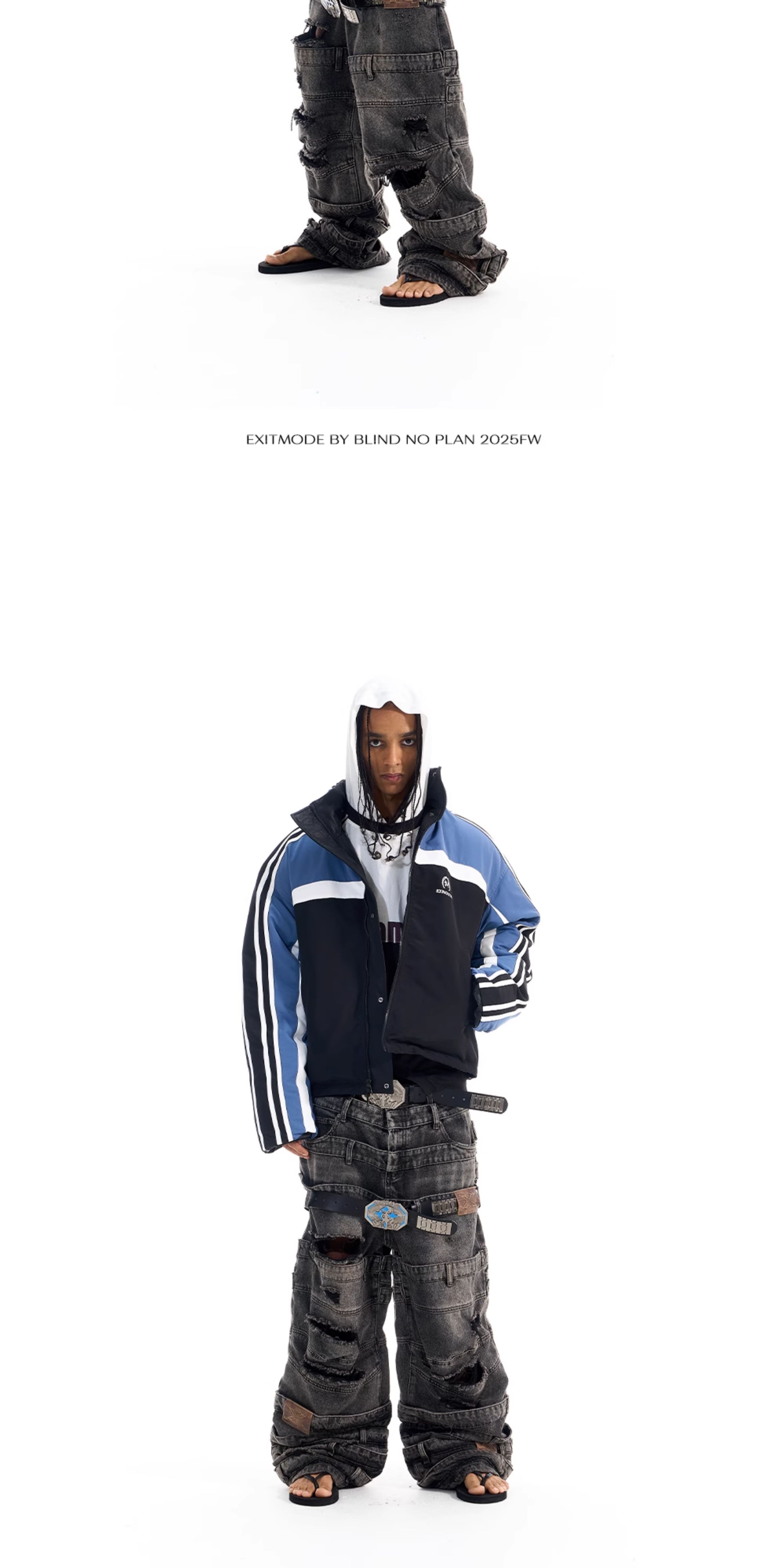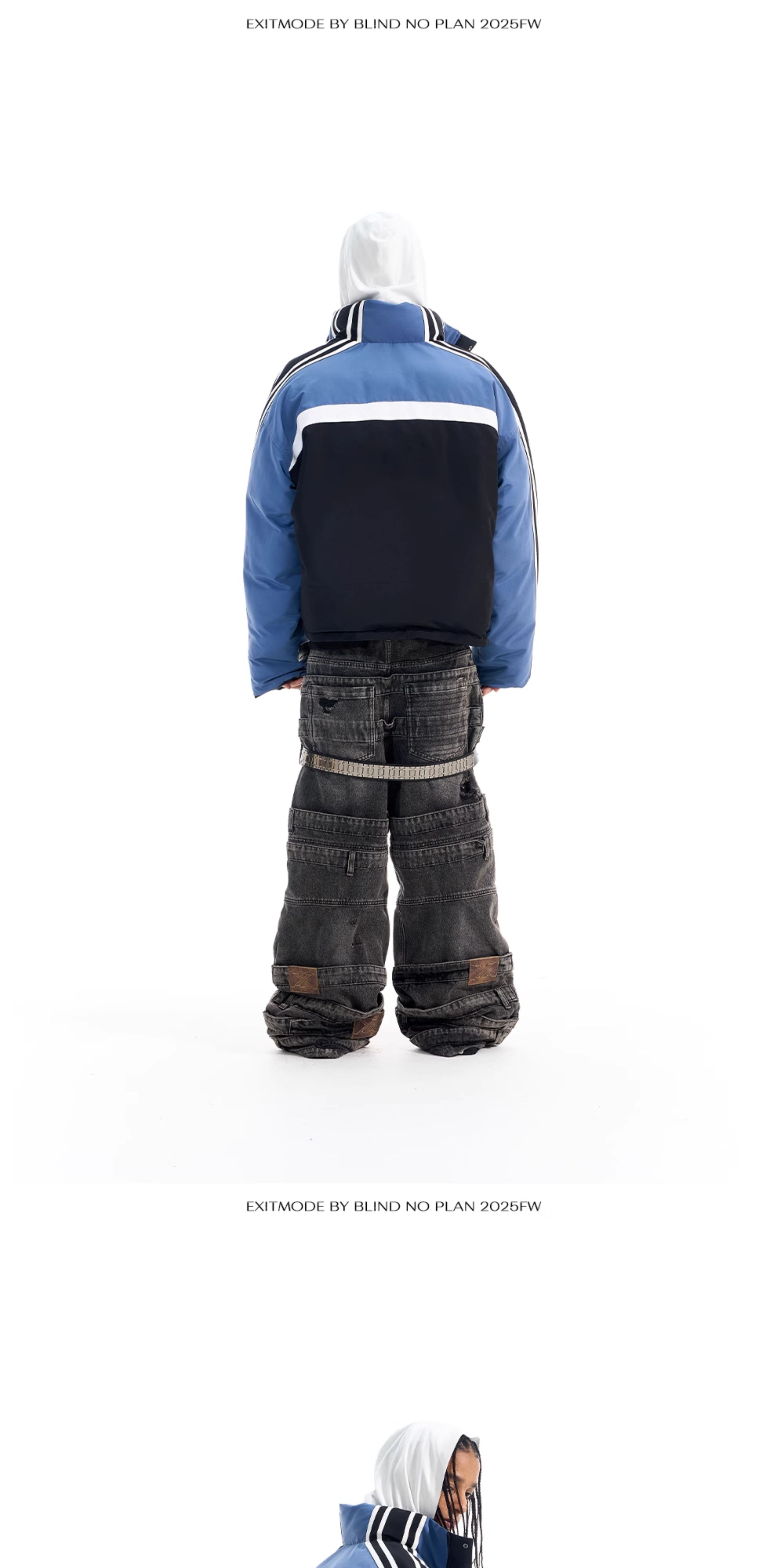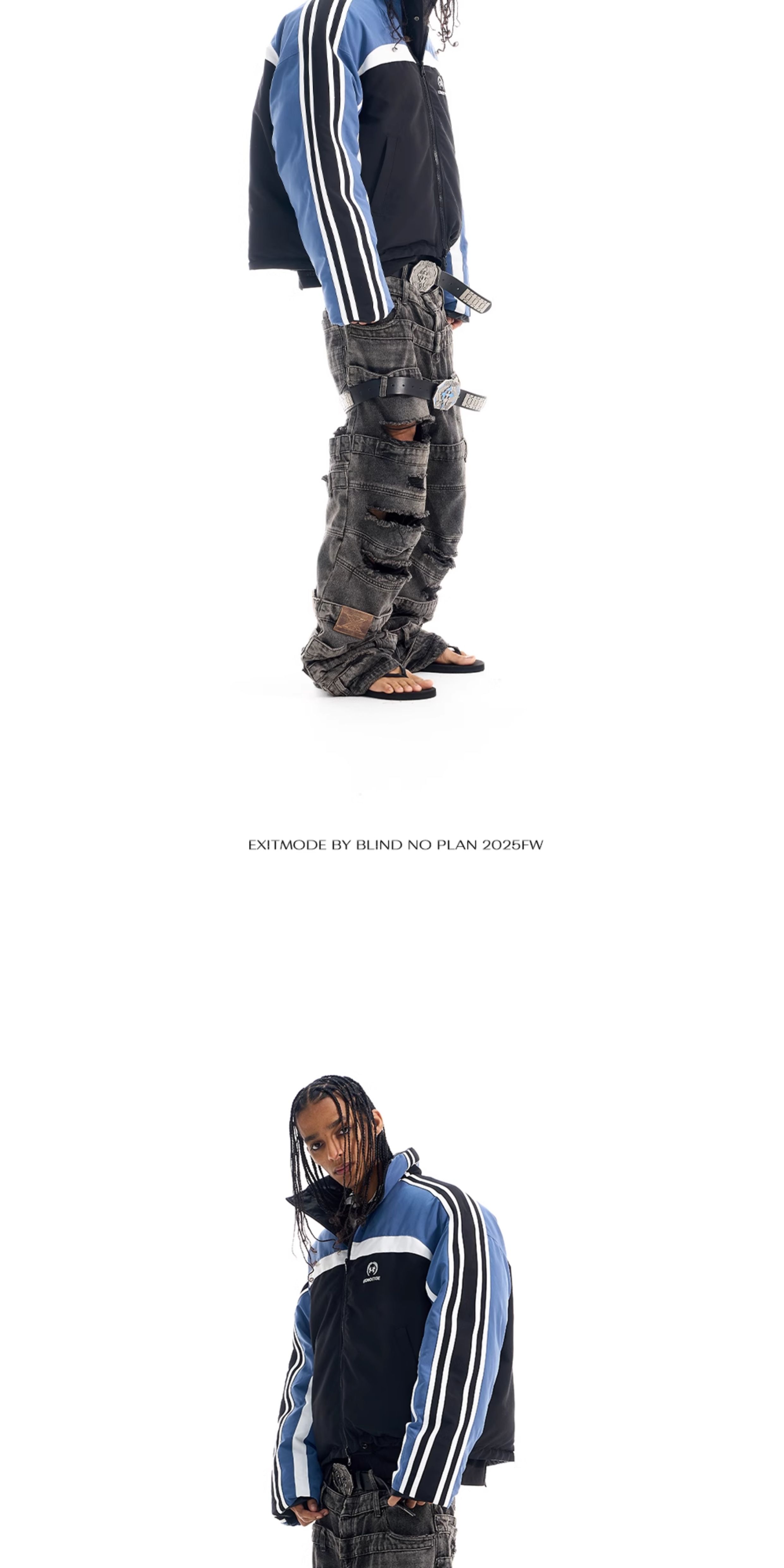 - This jacket features a relaxed oversized fit and offers dual-sided wear. One side presents a clean, versatile look, while the reverse showcases sporty colorblock panels. Embroidery accents add refined detail, making it both functional and stylish.