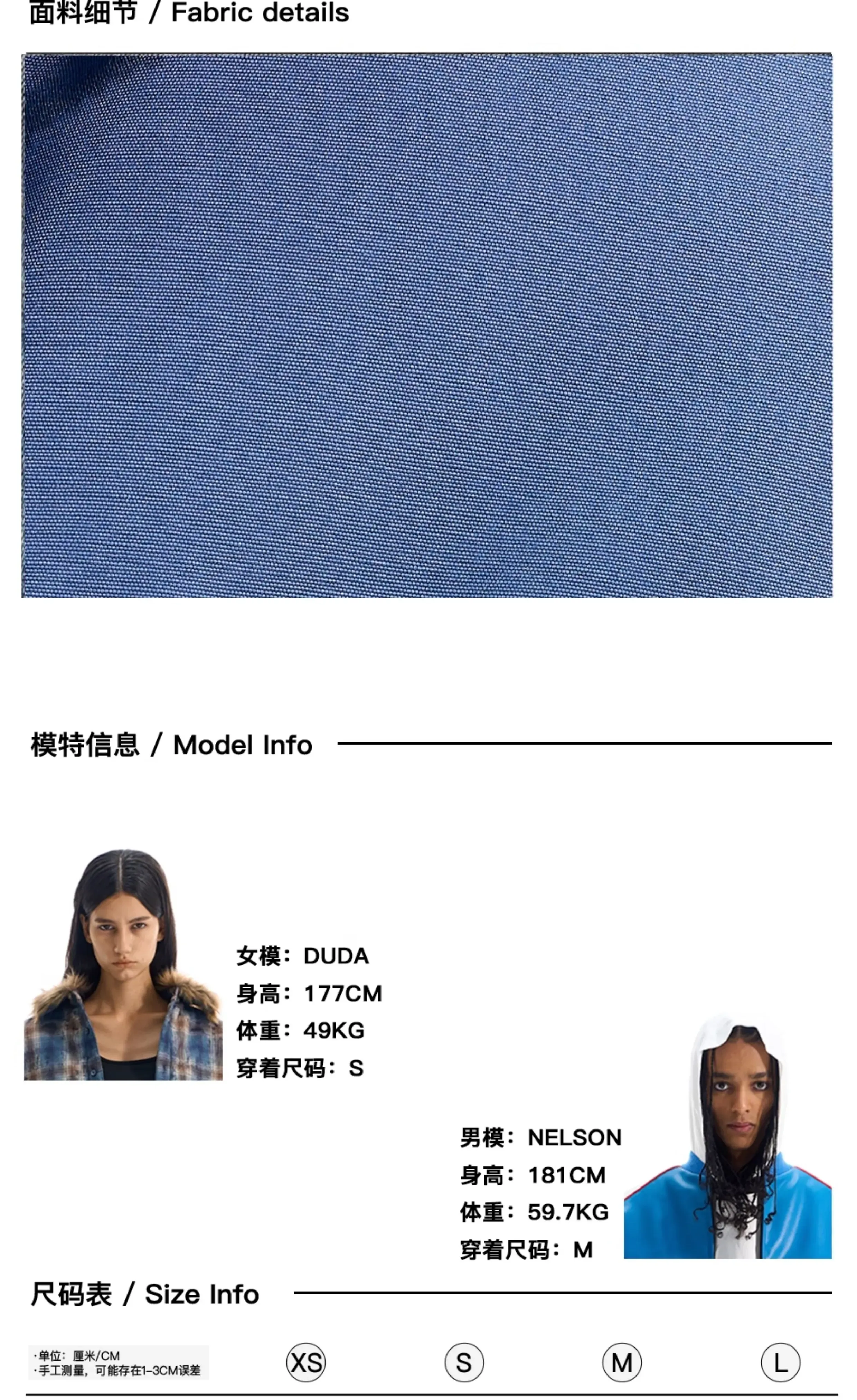 • Fabric characteristics: The fabric has a clear texture and a comfortable hand feel. It is filled with bio-velvet inside, providing excellent warmth retention.
