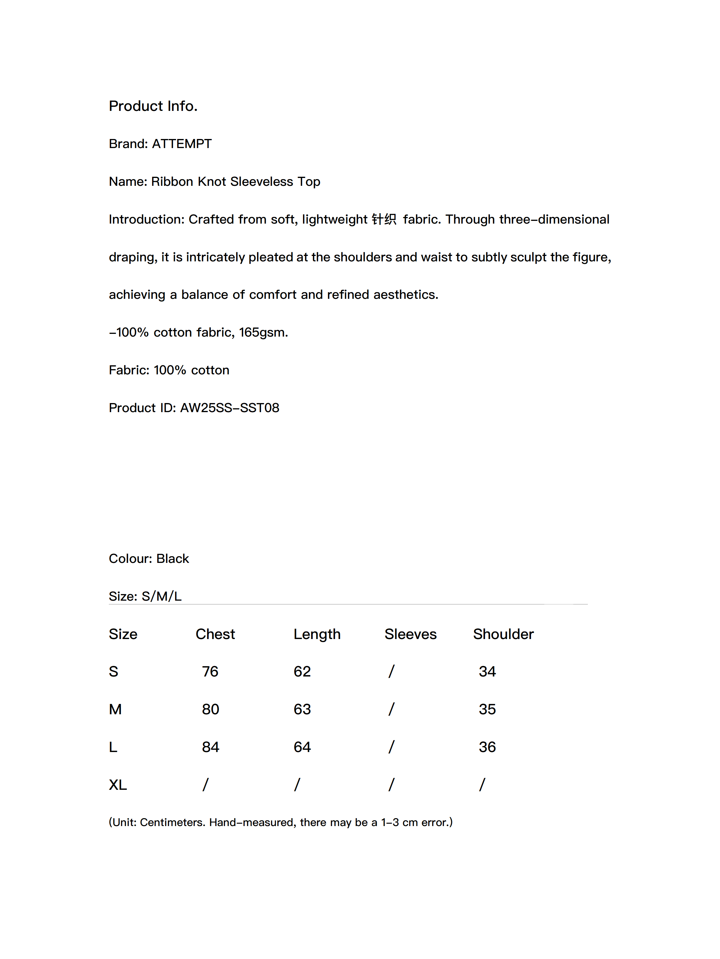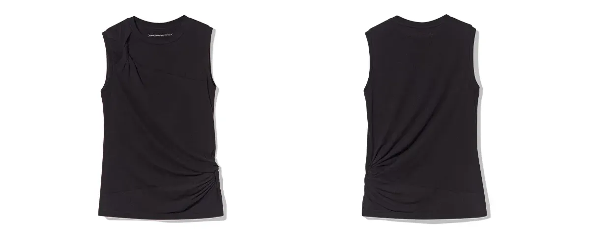 Crafted from soft, lightweight针织 fabric. Through three-dimensional draping, it is intricately pleated at the shoulders and waist to subtly sculpt the figure, achieving a balance of comfort and refined aesthetics. -100% cotton fabric, 165gsm.