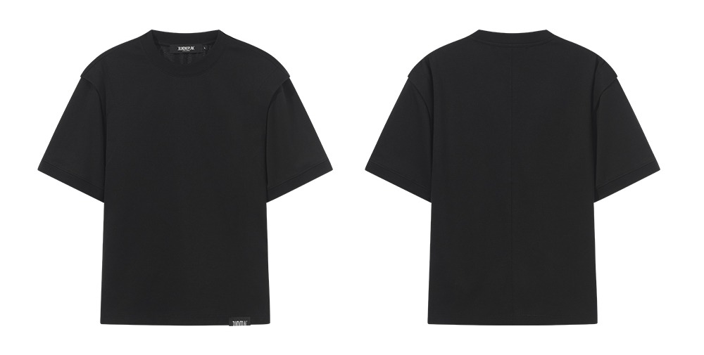 Design Details: This T-shirt features a pattern design that enhances the body’s silhouette, combined with a false double-layered effect on the shoulder sleeves. The result is a stylish piece with enriched visual details and a flattering fit.