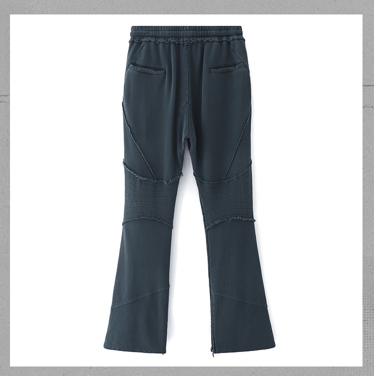 • Building on the classic fluid tailoring of D5OVE, these trousers have been refined to achieve a natural bootcut silhouette that elongates the legs. The design incorporates asymmetric seam lines and moto-inspired details for a richer, fuller aesthetic. Adjustable ankle zippers allow you to customize the opening, changing the silhouette for added versatility.Crafted from premium cotton, the fabric offers comfort with excellent drape, creating a dynamic, flowing effect when worn. Enhanced by D5OVE's signature garment-wash, the finish presents a vintage fade for a distinctly vintage look.