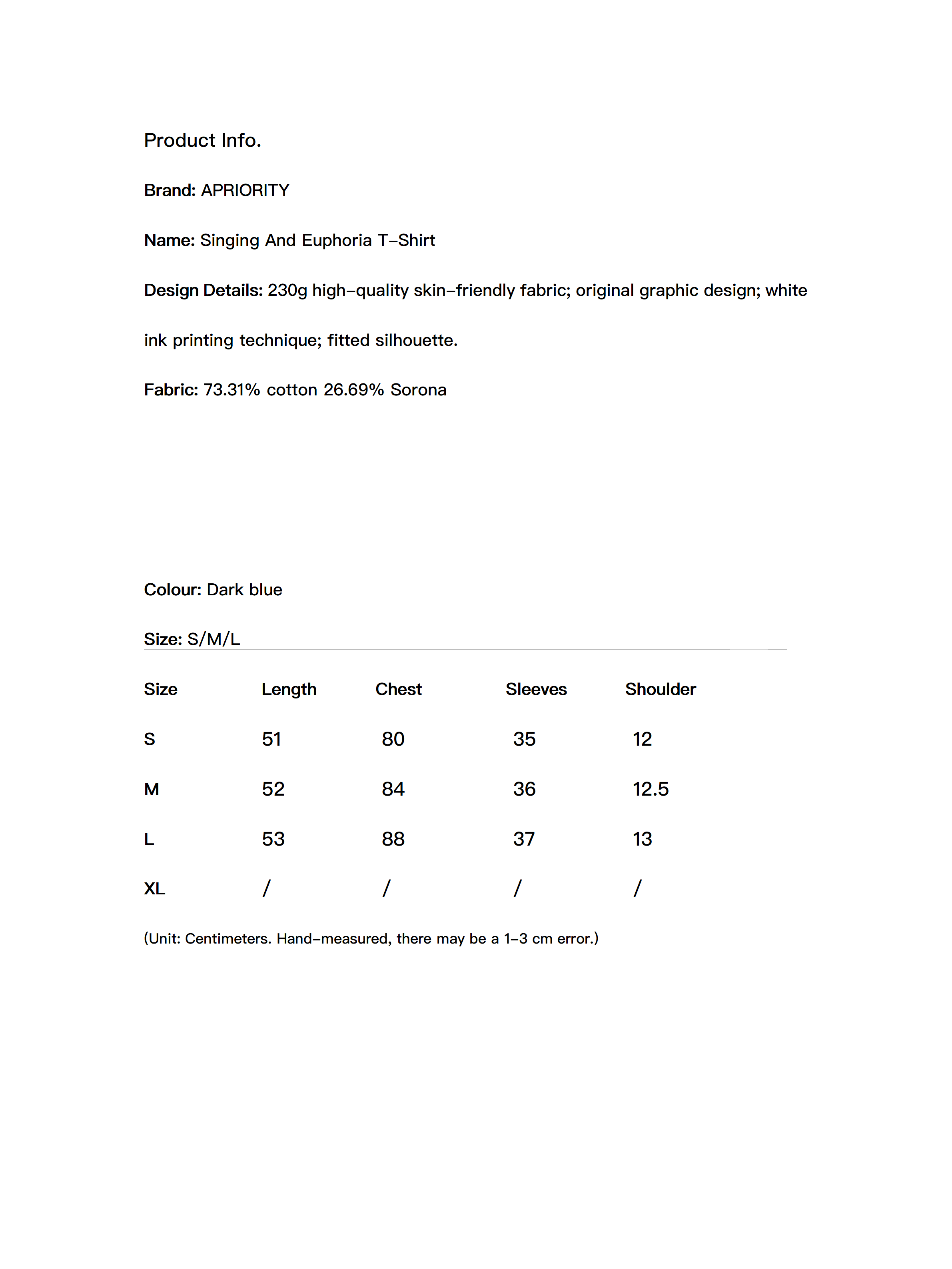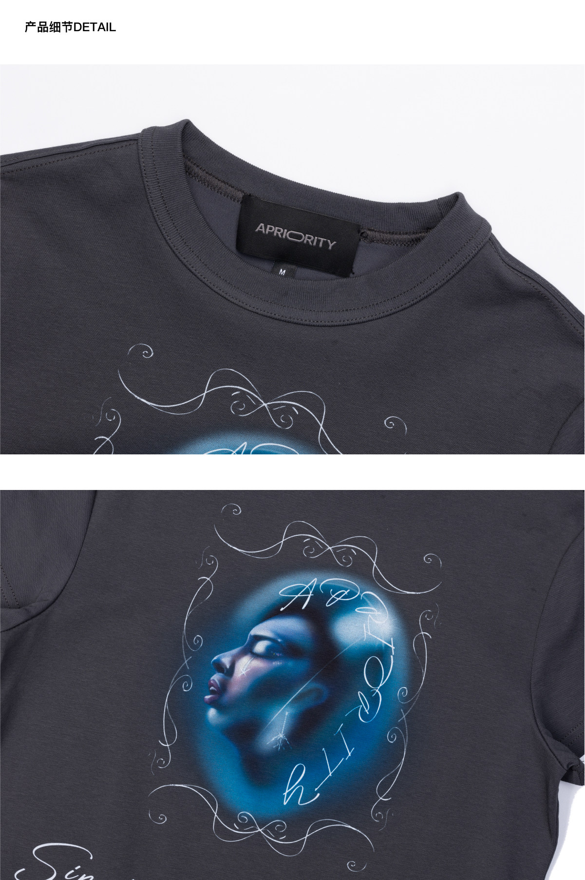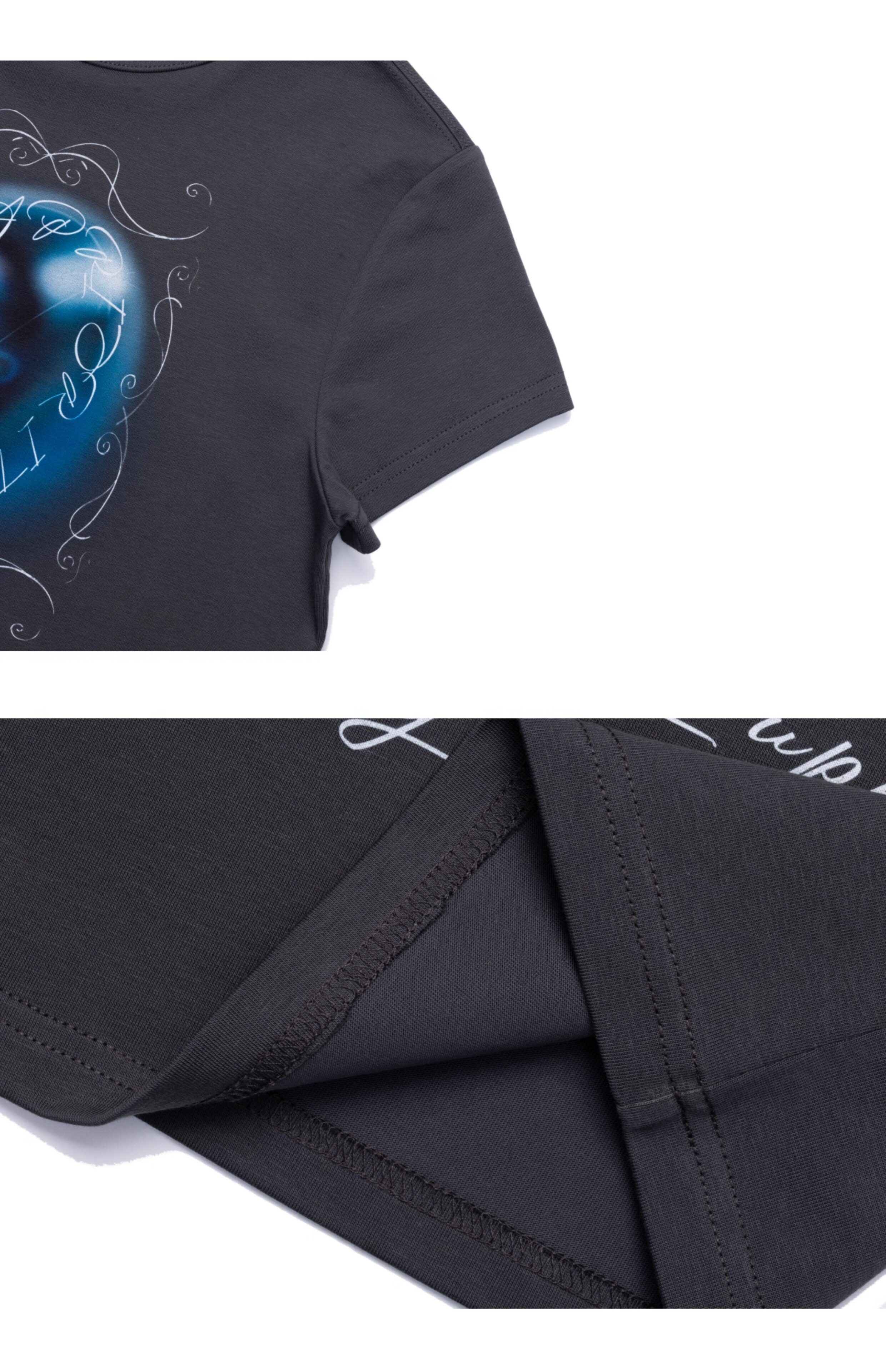 230g high-quality skin-friendly fabric; original graphic design; white ink printing technique; fitted silhouette.