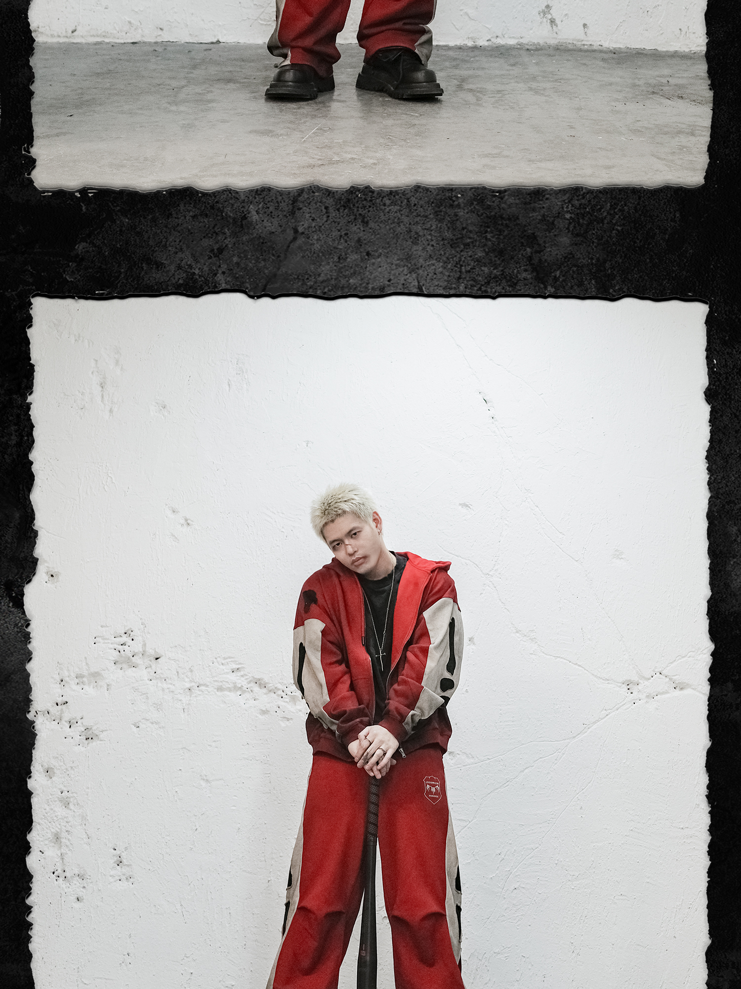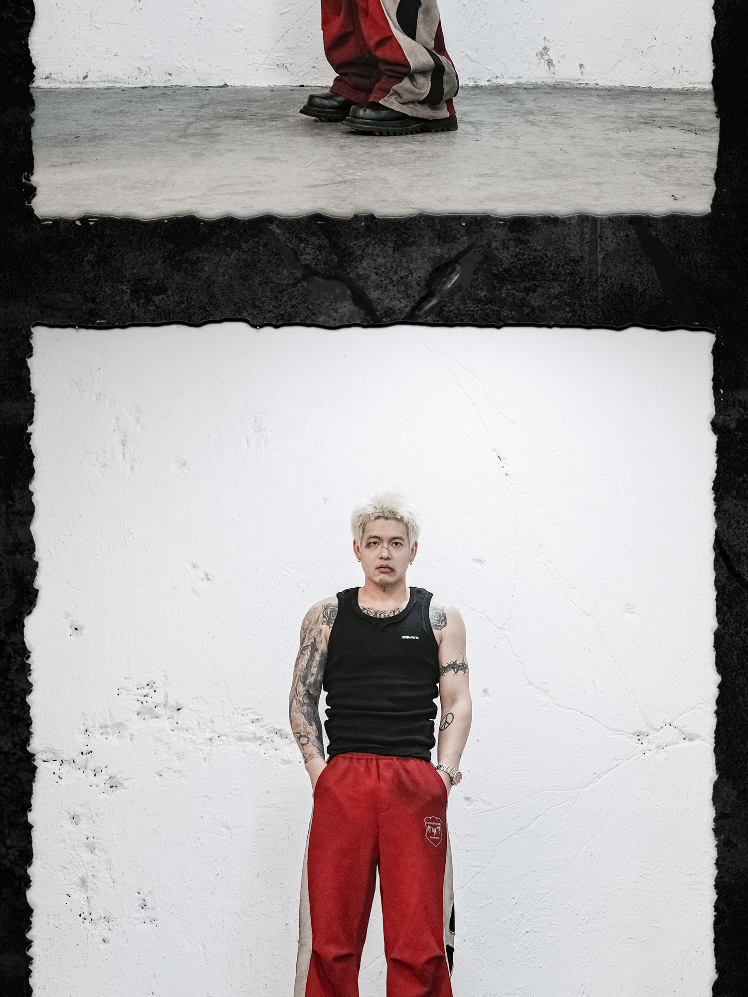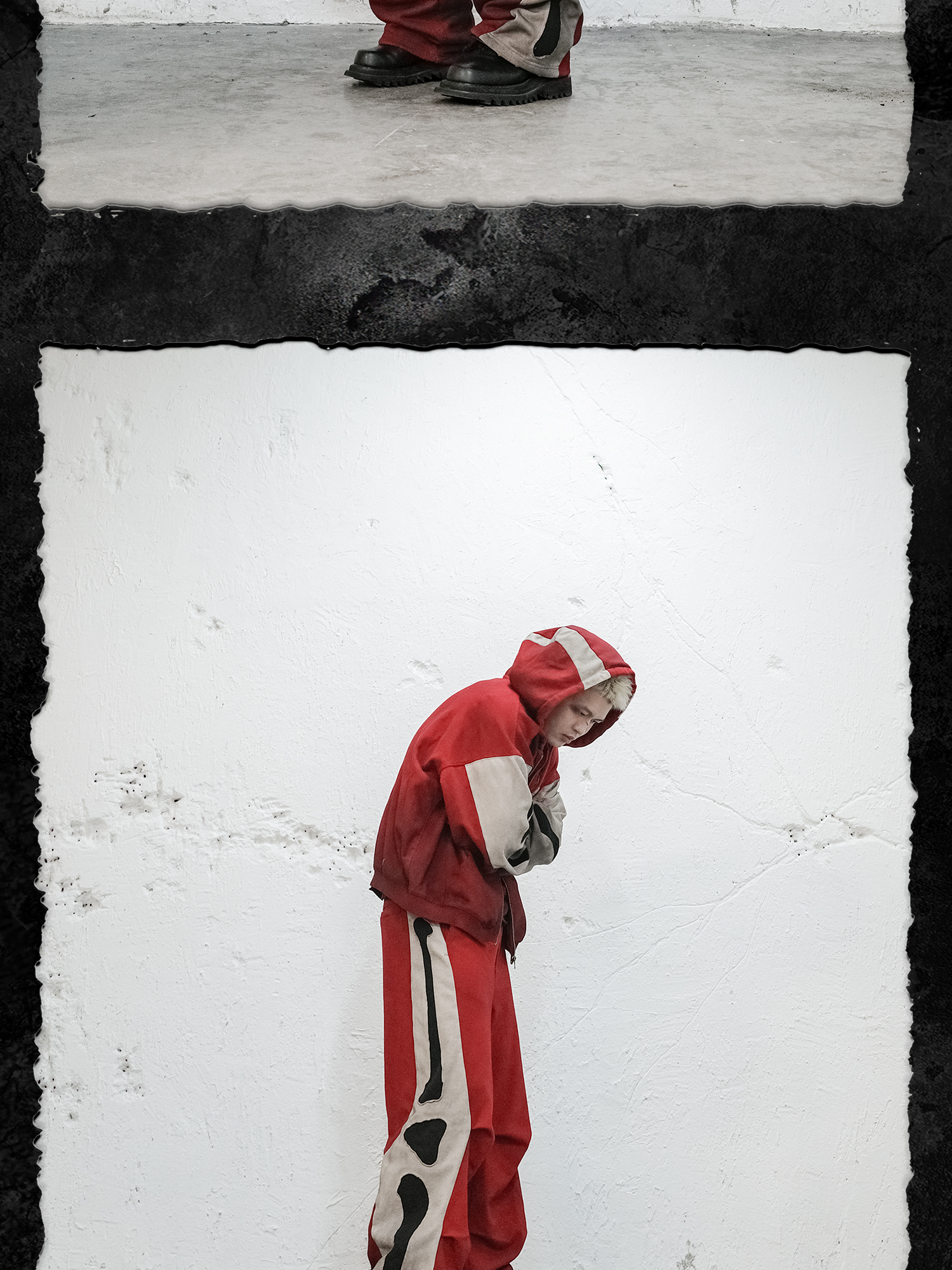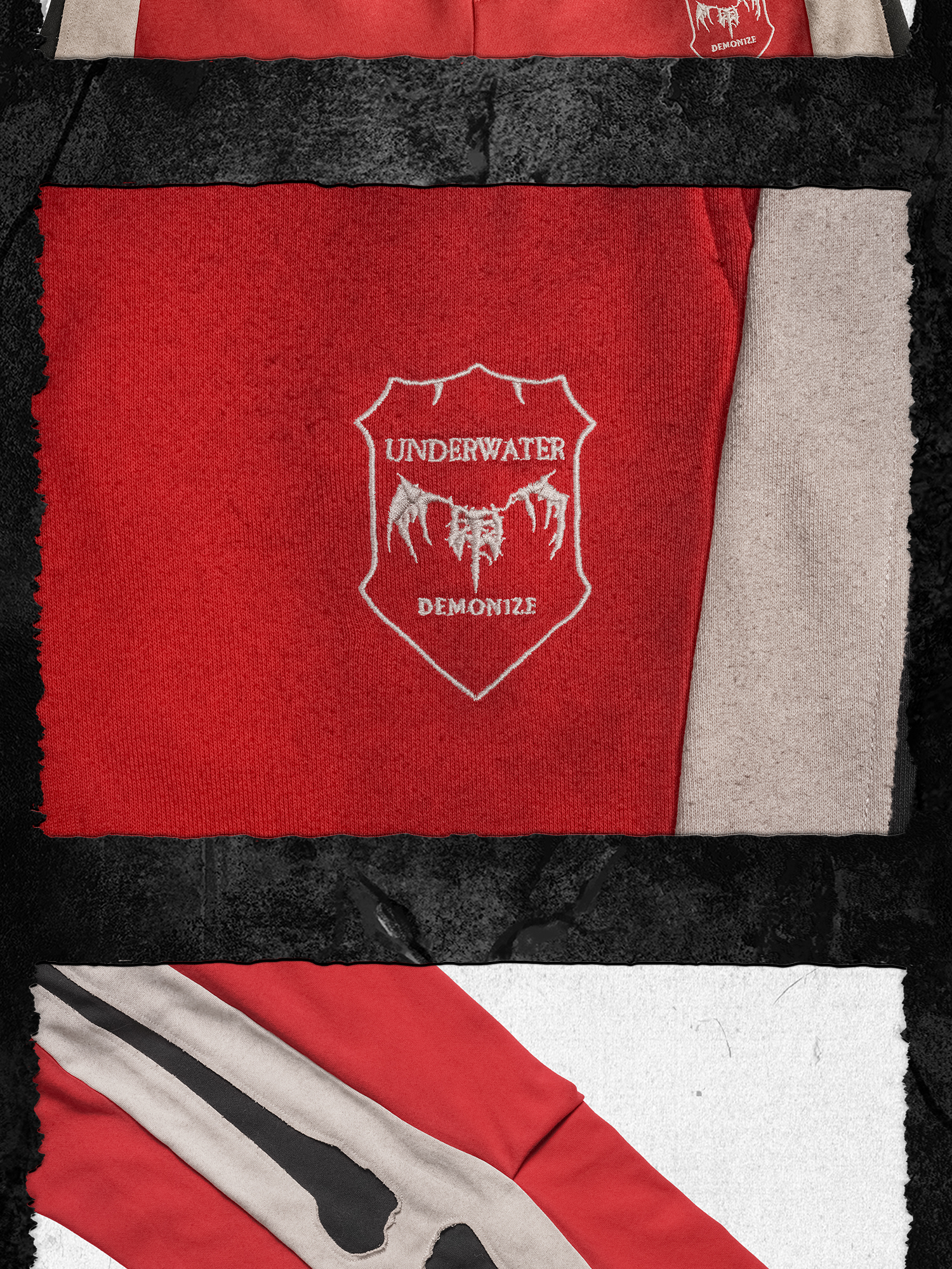 - Designed in a relaxed UW fit, these sweatpants are crafted from soft cotton terry fabric for breathable comfort. The 3D tailoring subtly shapes the leg line, while the pants are detailed with irregular skeletal-shaped contrast raw-edge panels, highlighting a biomechanical aesthetic full of tension. Adjustable drawcords hidden inside the cuffs allow versatile styling for different looks and scenarios. Hand-applied distressing and sprayed washing treatments give a weathered, corroded finish, as though eroded by time. A custom demon bone crest embroidered on the front precisely captures skeletal textures, symbolizing an eternal covenant. With its layered raw edges, bone-inspired patchwork, and distressed finish, the piece embodies rebellion and rebirth in a dark aesthetic.