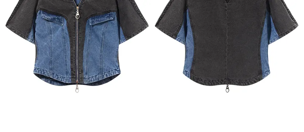 The entire body of the jacket is designed with an interlocking and flying flat connection from the body to the sleeves. The metal zipper extends to the entire collar, and the overall silhouette is slim-fit. The custom metal tag on the back collar adds texture to the jacket.