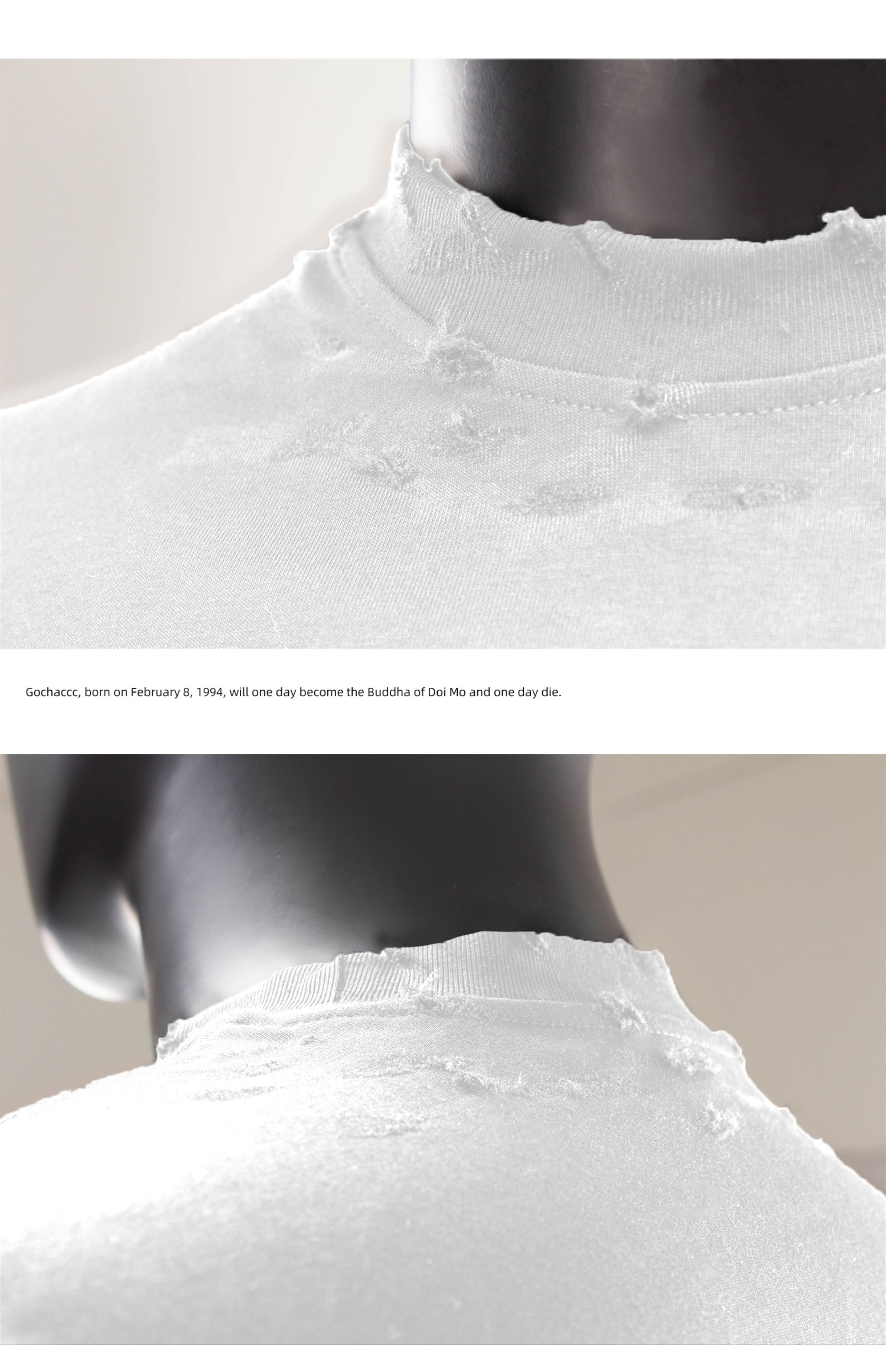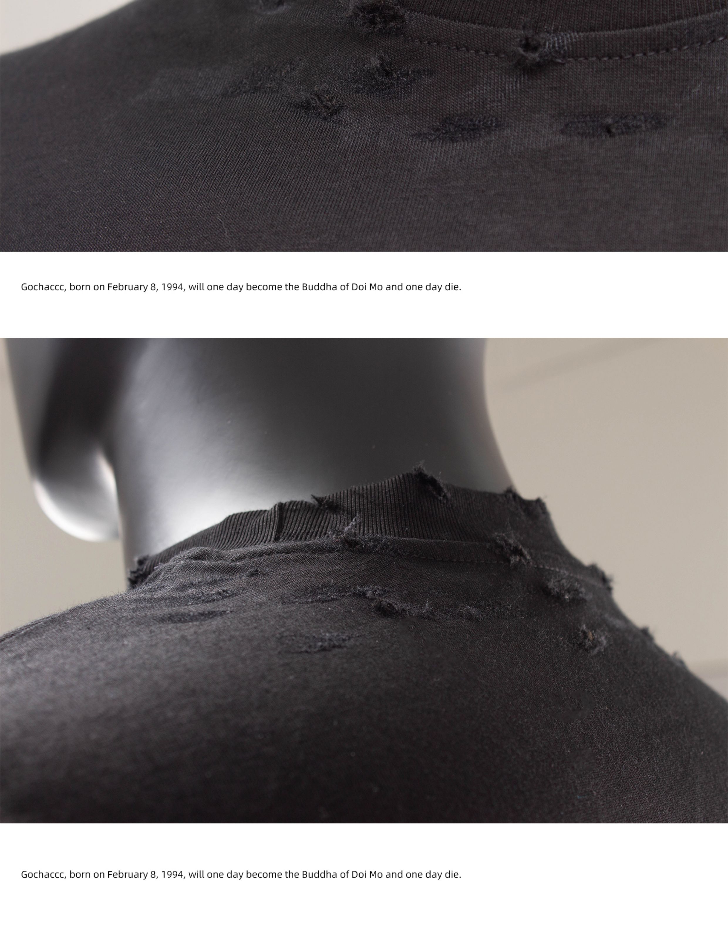 - Crafted from Sorona performance fiber, this T-shirt offers exceptional softness, quick moisture absorption, and superior elasticity. Unlike typical synthetic fibers, Sorona resists pilling and maintains long-lasting shape retention. The garment incorporates distressed detailing to enhance its worn-in character while preserving comfort and durability, making it a versatile everyday essential with a subtly rebellious edge.
