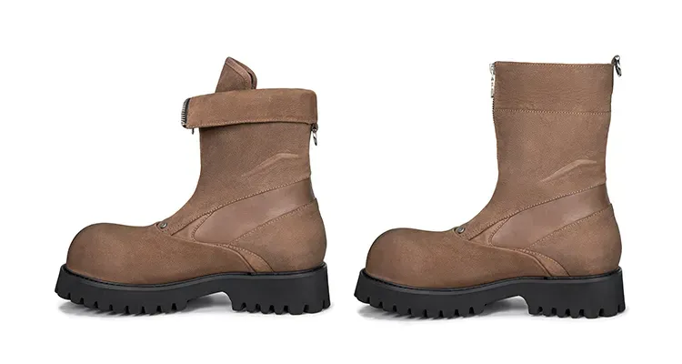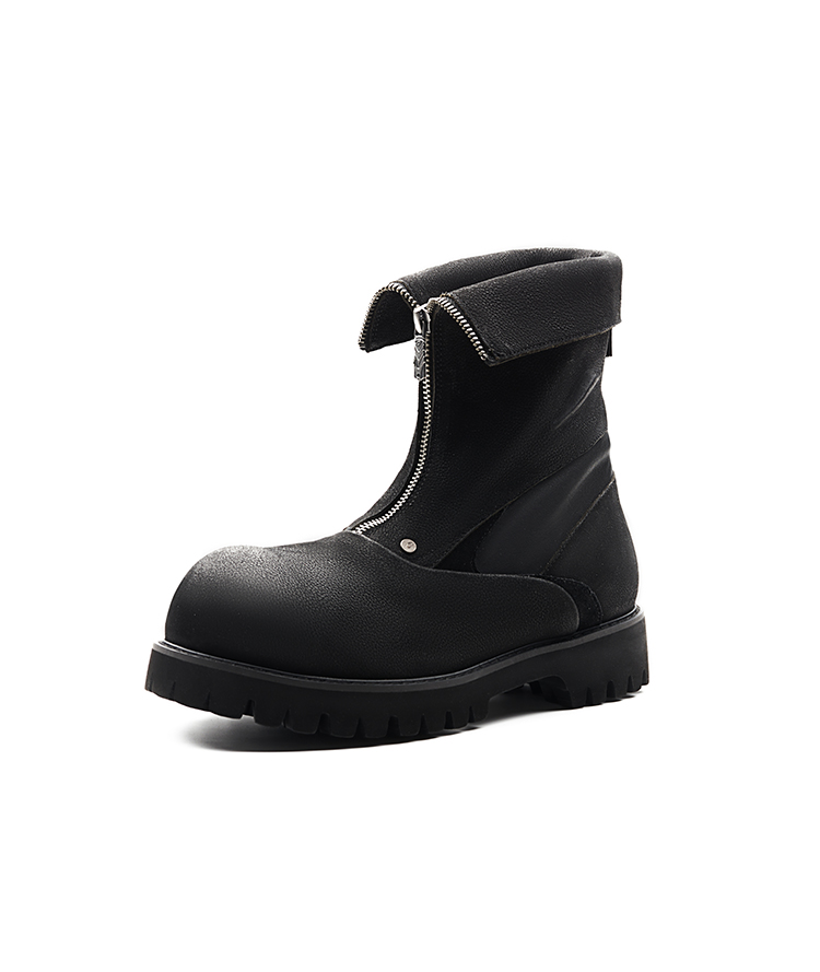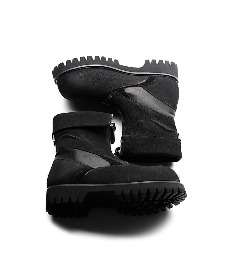 - In this design, we fuse three core styles: avant-garde, craftsmanship, and deconstruction. We employ superior and diverse materials alongside various tailoring techniques to express our perspectives on ourselves and the world around us. The upper combines full-grain leather panels with natural grain texture, paired with nylon for a rugged, organic look.