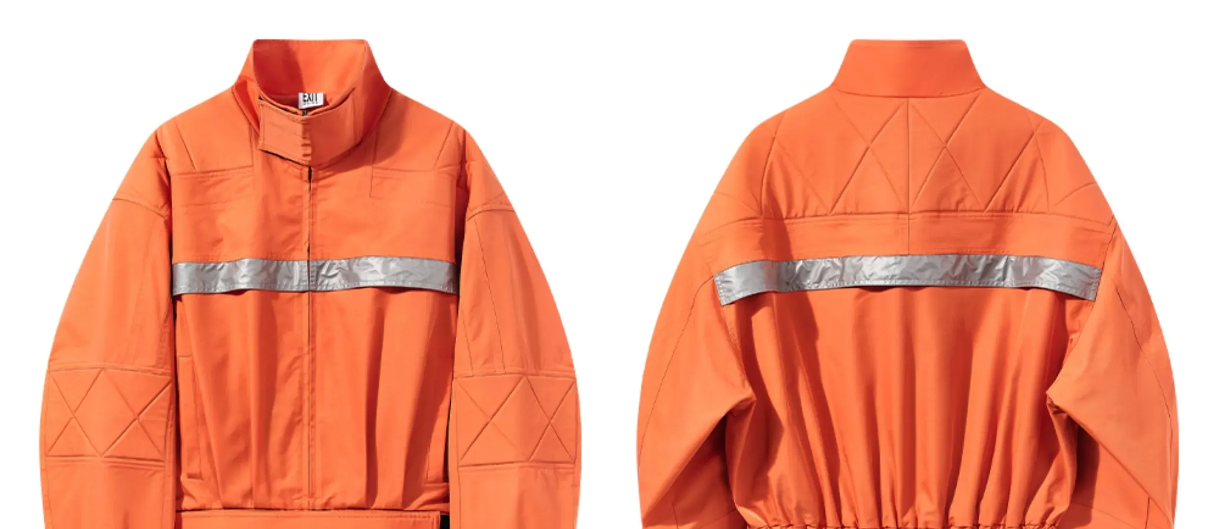 Design Details: Designed in an oversized silhouette, this jacket incorporates reflective stripe elements for a futuristic edge. Quilted detailing on the shoulders and sleeves adds structure, while the Velcro-adjustable hem enhances shape control and elevates the overall visual impact.