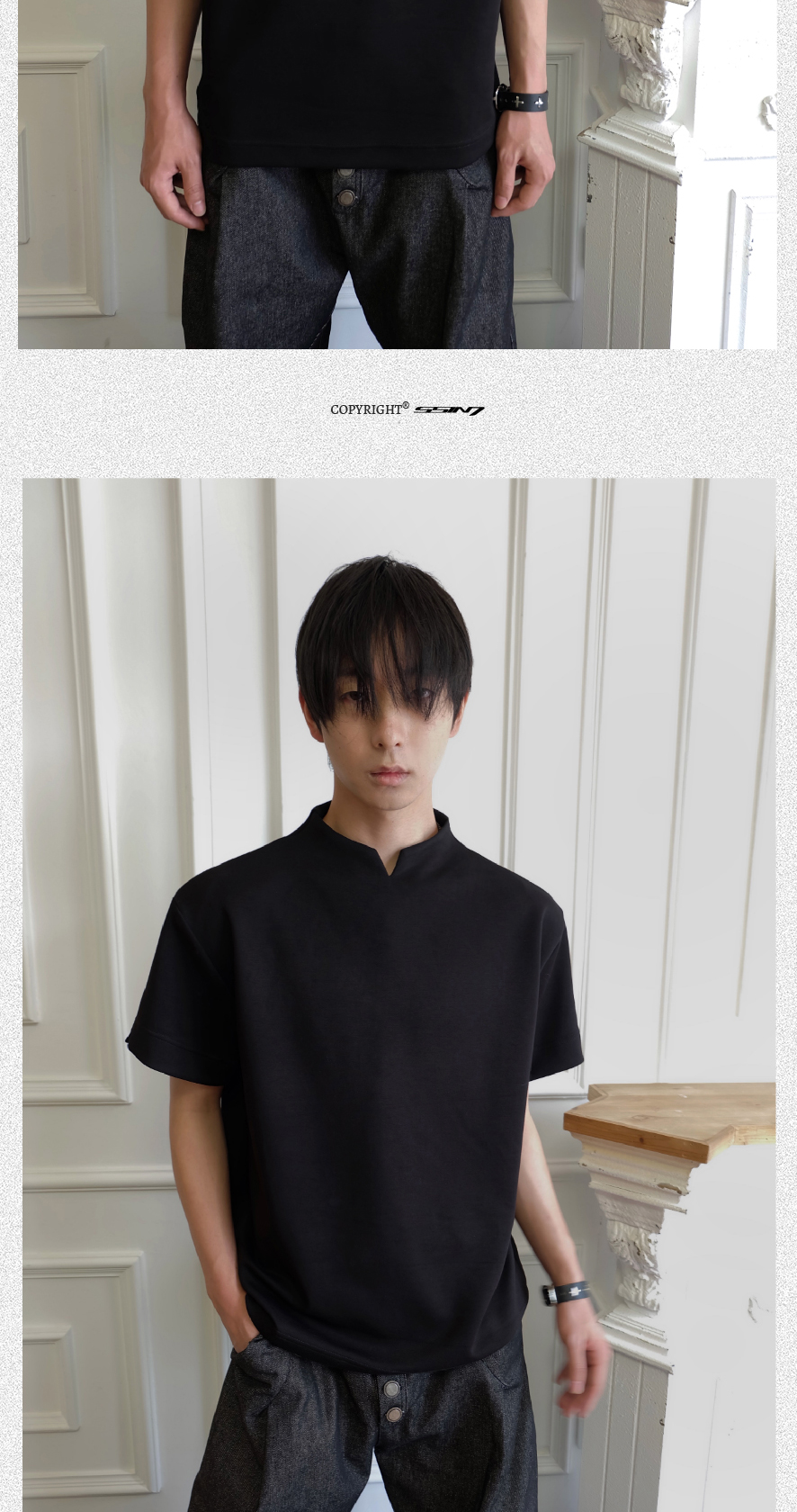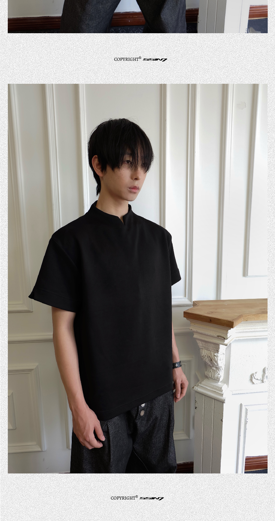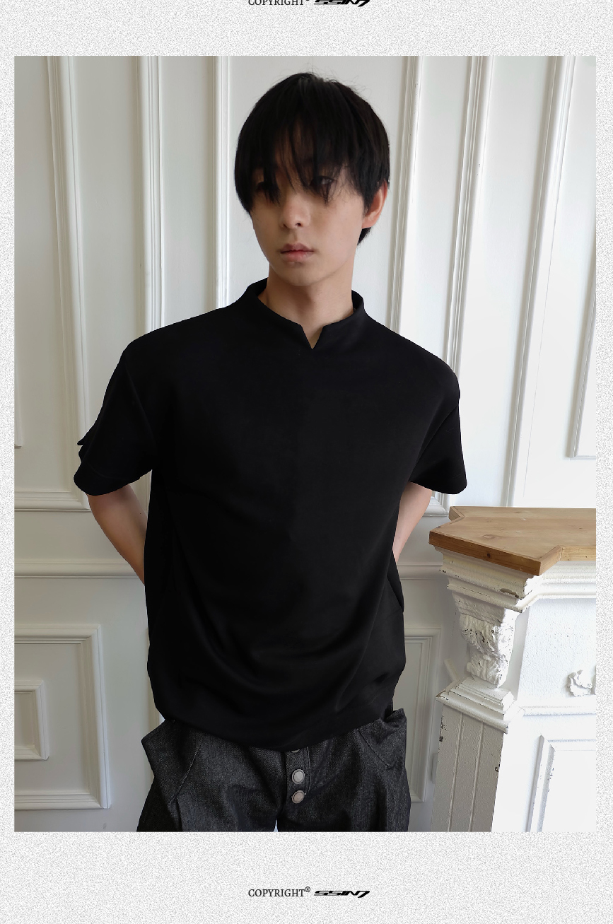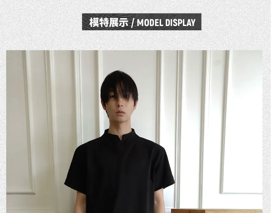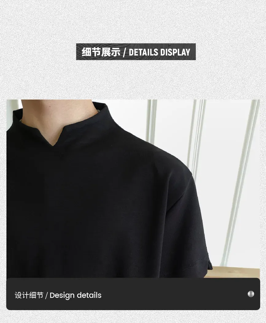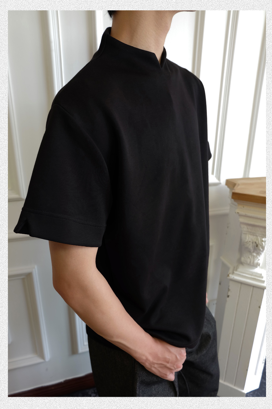 - Crafted from ice-touch air-layer space cotton fabric, this T-shirt offers a cool, breathable, and skin-friendly wearing experience. The stand collar combined with a V-neck design adds a touch of modern sophistication, making it versatile yet stylish for daily wear.