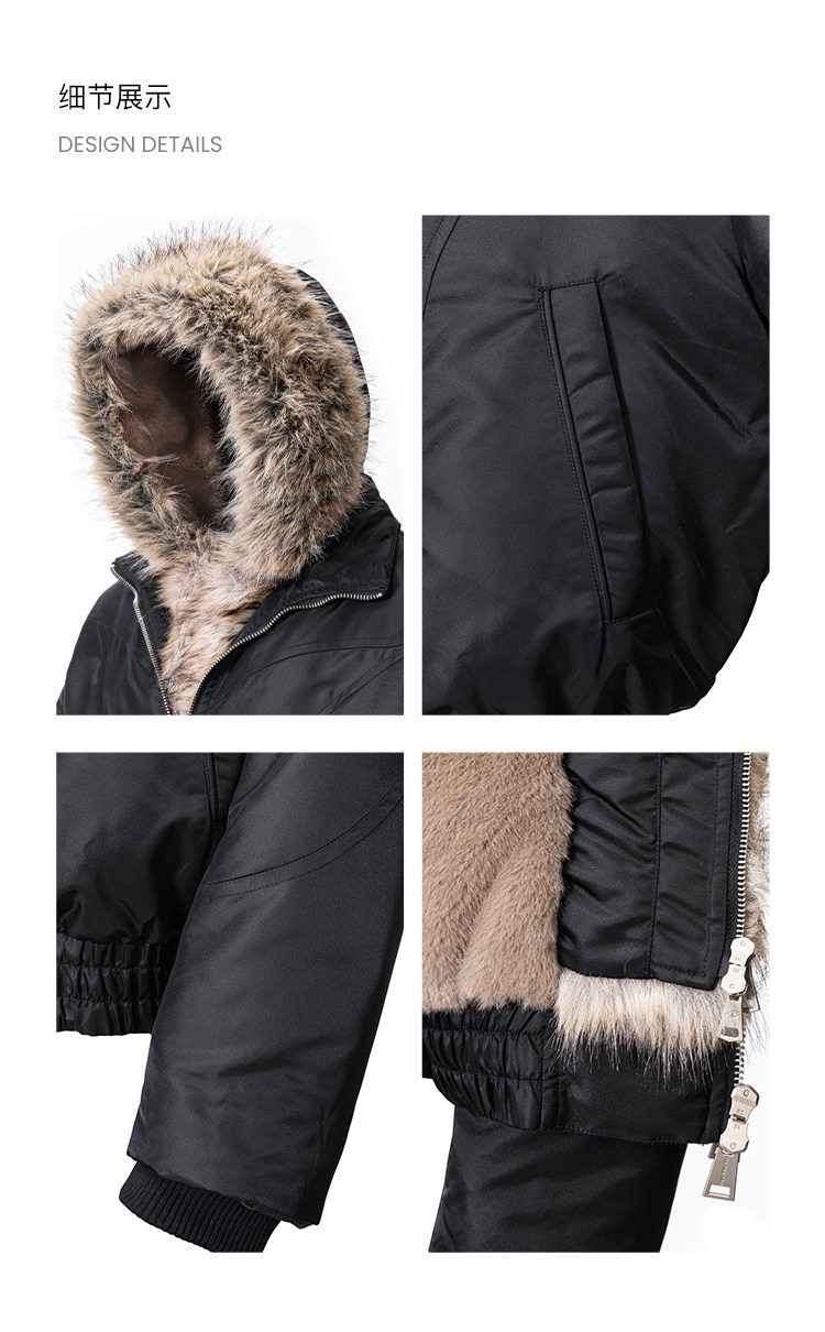- The outer fabric shields against wind and cold, laying the foundation for warmth. The collar and placket are trimmed with dyed, textured fur—plush and rich in color layers—adding both luxurious identity and full-neck protection. Inside, a combination of faux mink lining and down filling creates a triple-layer warmth structure: "windproof outer + down mid-layer for insulation + skin-friendly faux mink inner," ensuring long-lasting heat retention even in deep winter. The inner material is soft and comfortable to wear without restriction. The two-in-one layered design enhances visual depth and style, while the windproof cuffs improve sealability and keep the sleeve position tidy for a cleaner silhouette.