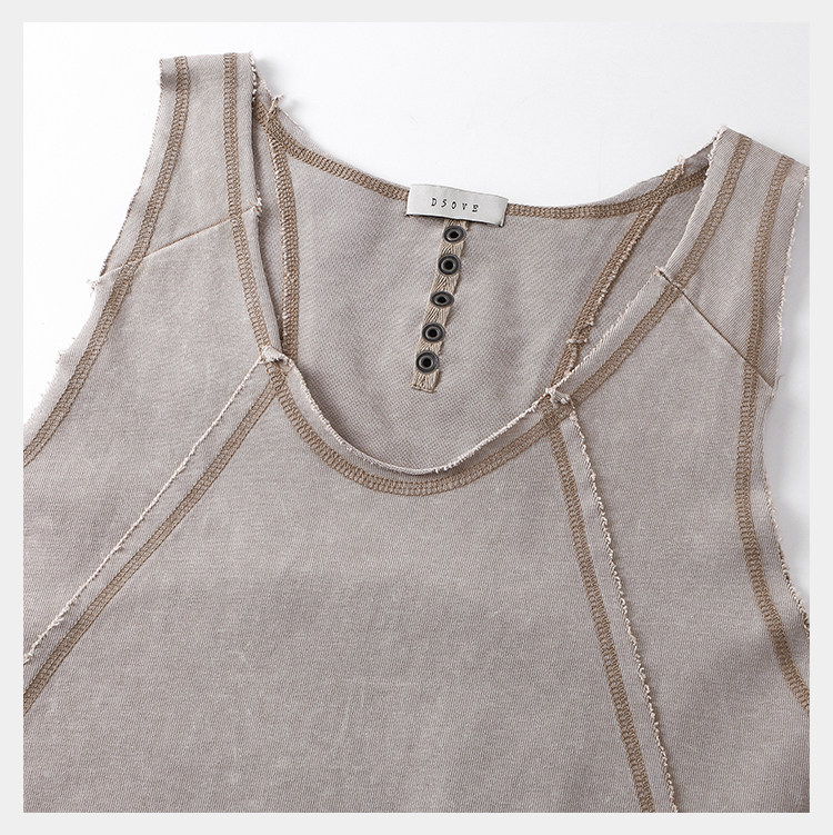 • Following the signature D5OVE vest silhouette with a loose cut for an effortless, natural fit. The front and back feature clean, flowing panel construction with raw edges, complemented by a speckle wash and aging treatment that delivers a naturally worn texture. Made from quality cotton with moderate weight, ensuring a defined silhouette while maintaining comfort and breathability.