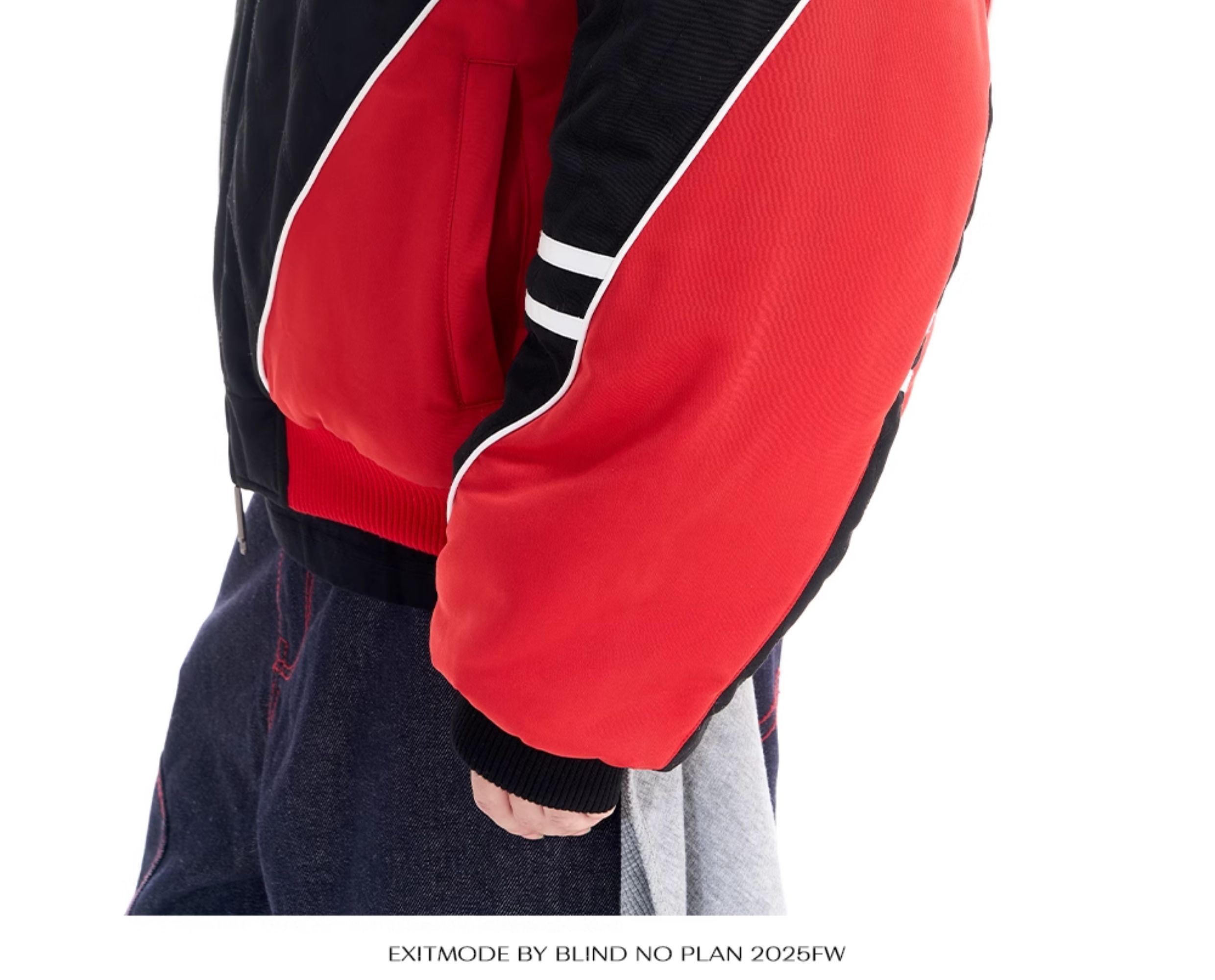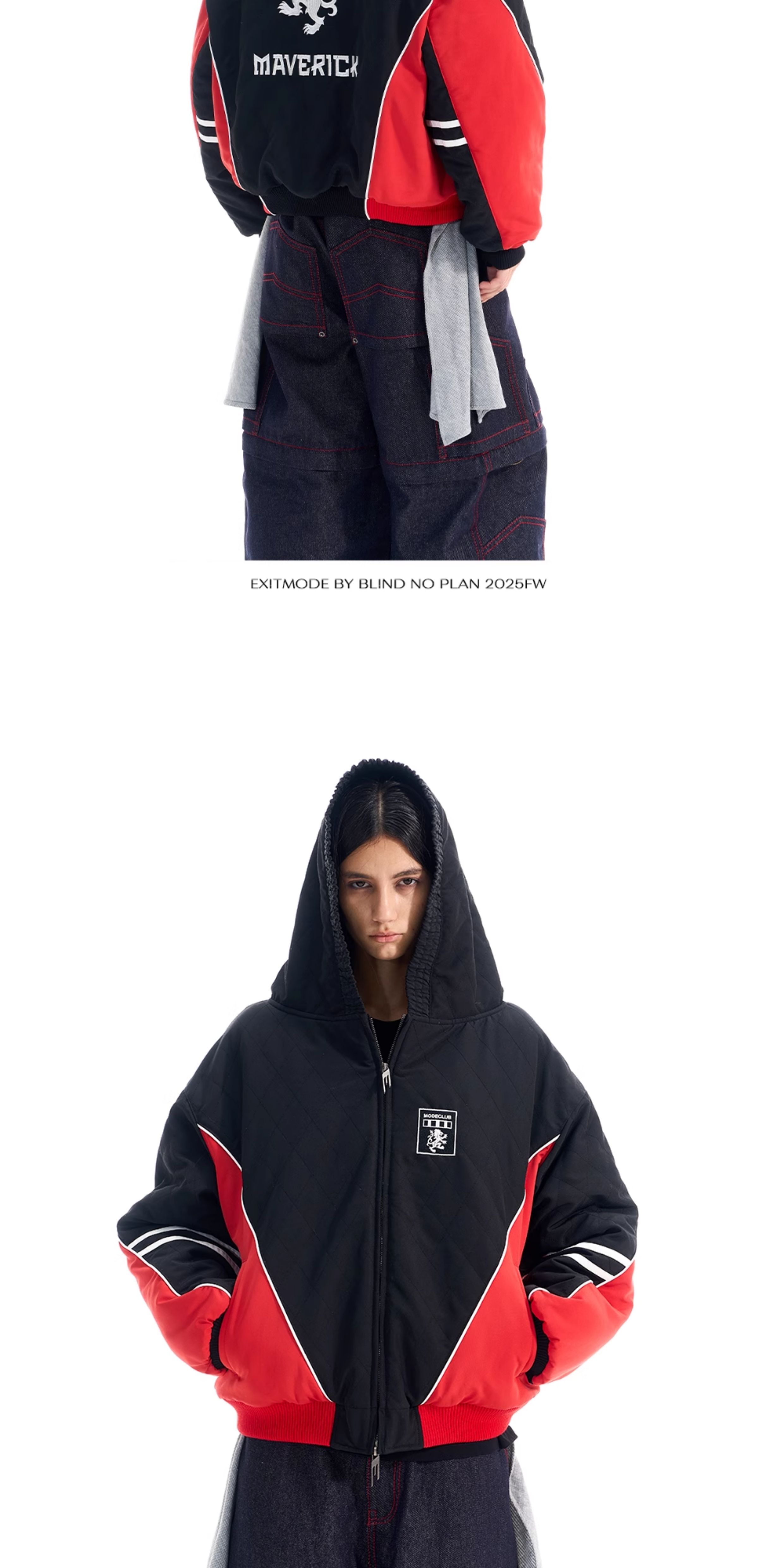 - Featuring a relaxed oversized fit, this jacket showcases tapered plaid quilting with colorblock detailing. Embroidery on the front and back adds visual interest, elevating the overall sporty and stylish aesthetic.