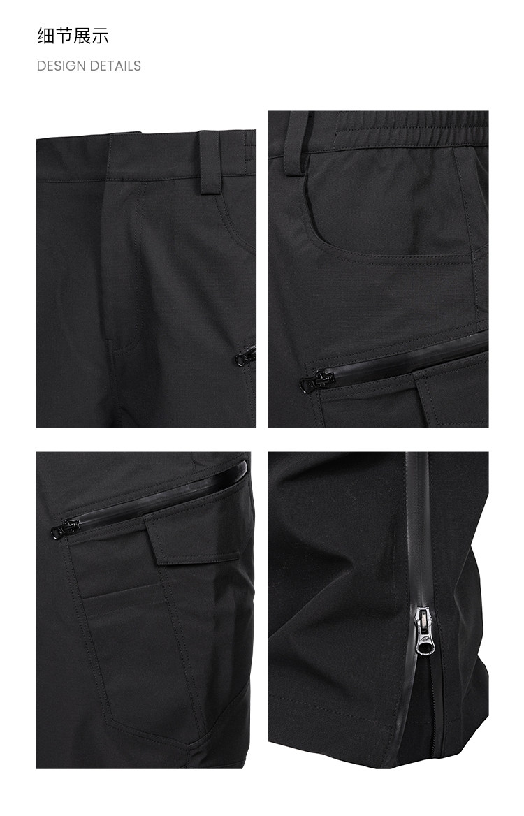 Design & Function Details: The waist employs an elasticated waistband to fit different sizes, while retaining belt loops for optional reinforcement with a belt, meeting the dual needs of free adjustment and secure fit. The multi-dimensional ten-pocket layout provides organized, tiered storage for essentials. Zippers on both calves allow for easier wearing and removal. The durable, smooth metal zipper pulls are resistant to damage in outdoor environments. During activity, opening the zippers enables rapid heat dissipation, adapting to alternating hot and cold outdoor conditions. The hem width is adjustable to accommodate different footwear. The seam lines at the knee follow ergonomic principles, offering no restriction when bending to enhance movement flexibility.