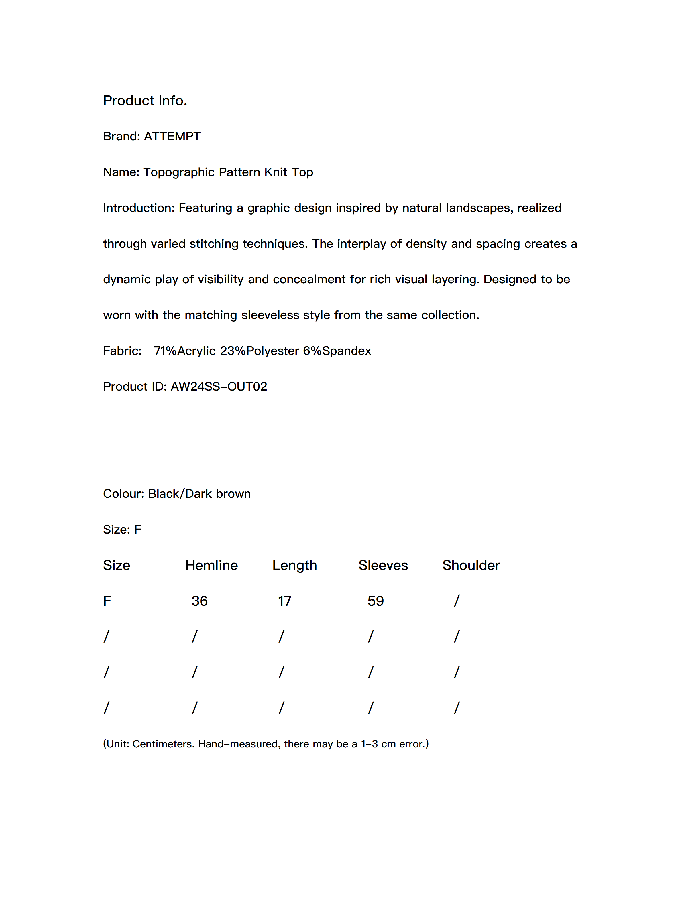 Featuring a graphic design inspired by natural landscapes, realized through varied stitching techniques. The interplay of density and spacing creates a dynamic play of visibility and concealment for rich visual layering. Designed to be worn with the matching sleeveless style from the same collection.