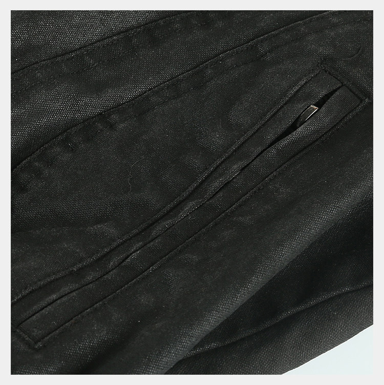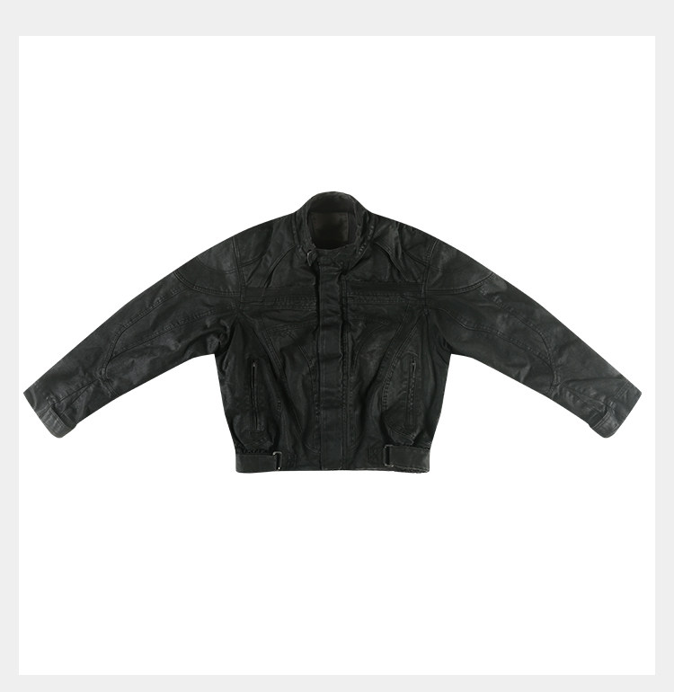 • Building on the classic D5OVE motorcycle jacket lineage, this piece adopts a cropped, wide boxy fit that visually raises the waistline and accentuates proportions. Multiple structural panels are combined with a hand-applied wax-dye and garment-aging process, creating a unique visual effect that enriches the design with texture and layering. The adjustable hem further contributes to a distinctive silhouette infused with raw motorcycle aesthetics for strong visual impact. Crafted from heavy-duty canvas that is structured and shape-holding, the jacket is treated with a signature hand-waxed dye and aging technique for standout. It delivers both practical wear and a bold visual statement.