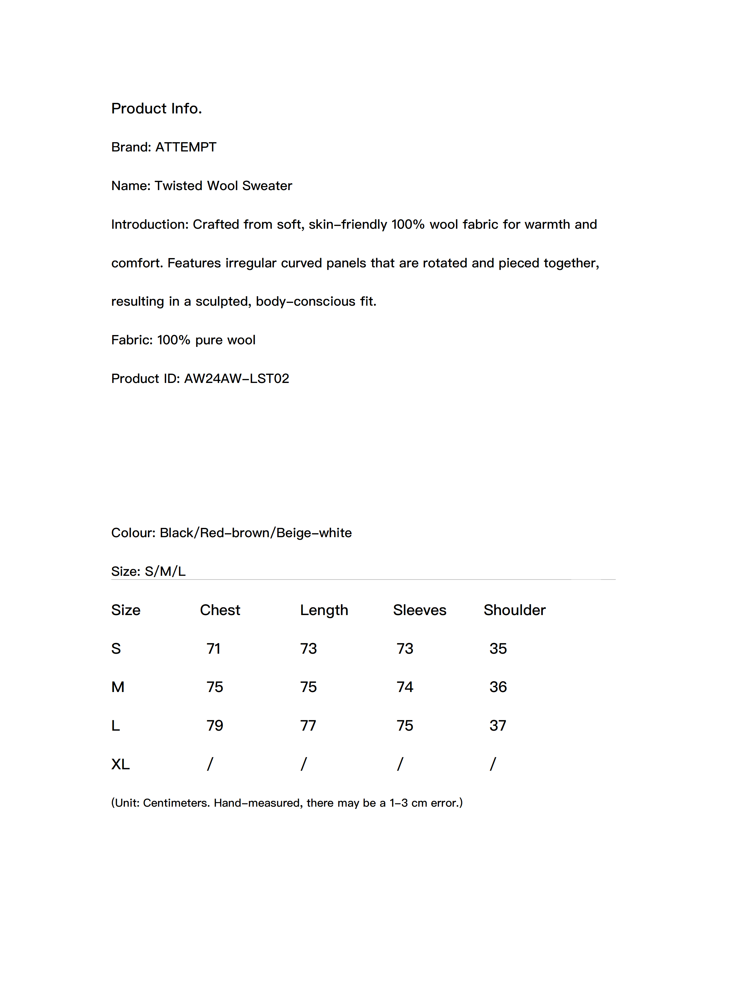 Crafted from soft, skin-friendly 100% wool fabric for warmth and comfort. Features irregular curved panels that are rotated and pieced together, resulting in a sculpted, body-conscious fit.