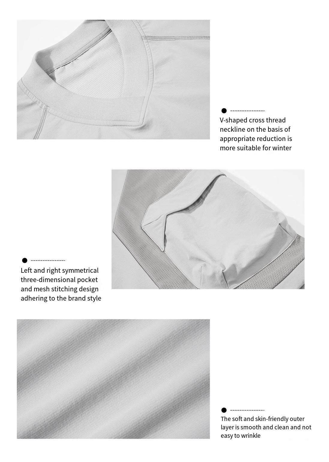 - The jersey features a prominent silhouette and a loose long-sleeved design. The fabric is soft, skin-friendly, with a smooth and clean outer layer, while the inner layer offers comfort. With its V-shaped cross thread neckline appropriately reduced, it becomes more suitable for winter wear. Additionally, the symmetrical three-dimensional pockets on both sides and the mesh stitching design adhere to the brand's consistent style.