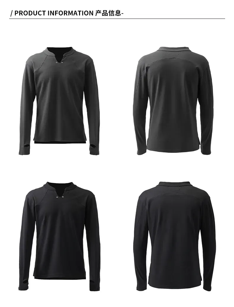 - Developed over months for a precise spring fit, this piece uses custom Maivoge jacquard fabric with dimensional texture and wrinkle resistance. The mesh-like construction enhances breathability, while a subtle V-neck is accented with dual gunmetal grommets. Multi-panel cutting creates rich visual depth, with ninja-style cuffs and a front-short/back-long hem for superior wearability. Works equally well as a standalone piece or layered. Offered in charcoal and black—a versatile seasonal essential.