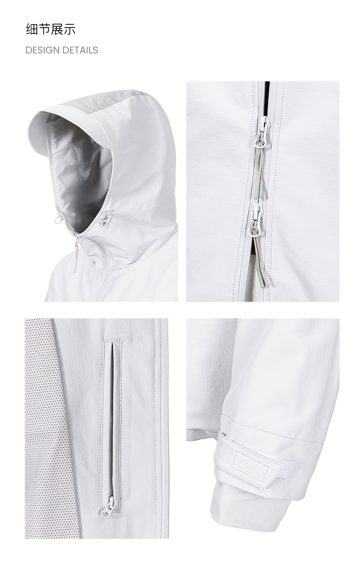This piece retains the signature "Venom" design elements while upgrading from a "summer-specific sun protection" piece to a "multi-season, multi-functional" garment. The softshell material offers better wind resistance and abrasion resistance. Compared to standard sun protection jackets, the fabric is more structured, maintaining a lightweight feel while improving tear resistance—suitable for managing temperature shifts between day and night, urban commuting, or providing wind protection for light outdoor activities.It features a tailored, non-restrictive 3D cut that follows the body's contours, allowing free movement for actions like raising arms or bending. The drawstring toggle at the hood adjusts fit for wind protection or to accommodate different head shapes. The main zipper and hidden pockets balance aesthetics with the security of personal items. This jacket preserves the core advantages of the Venom sun protection series while expanding its use cases and durability through its softshell properties.
