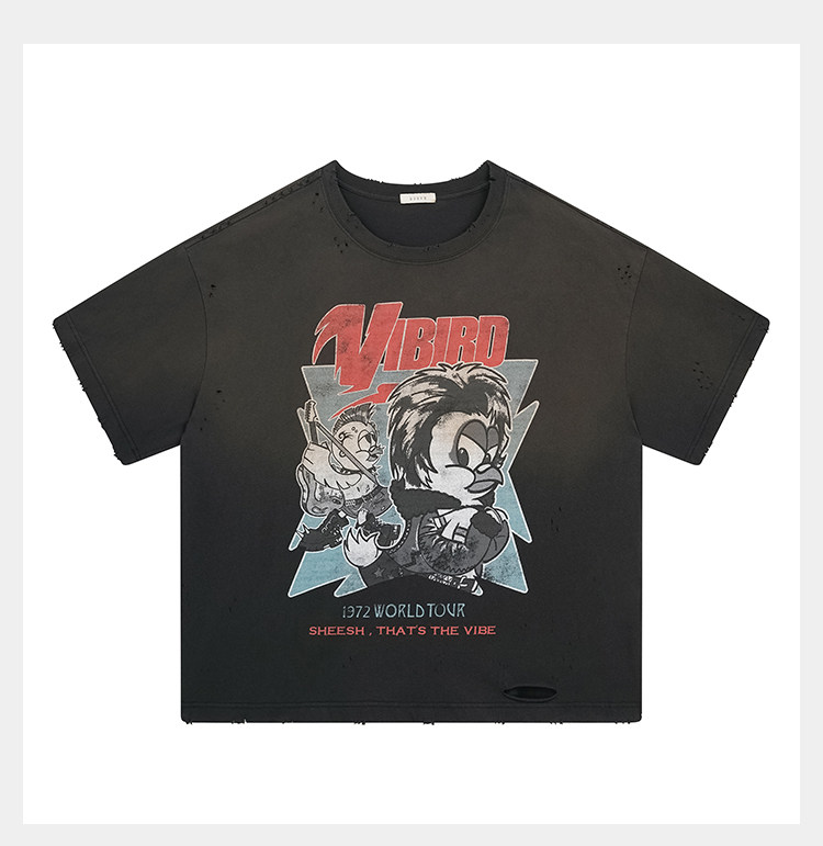 • Featuring a cropped, boxy fit with the season's playful thematic print. The low‑saturation gradient printing technique creates subtle layers of color, enhanced by hand‑distressing and aging for a strong vintage look. Made from premium cotton with a fine, skin‑friendly texture. Finished with D5OVE's signature garment‑wash and aging process for a natural vintage feel. Combined with the graphic print, it delivers a unique, effortless character.
