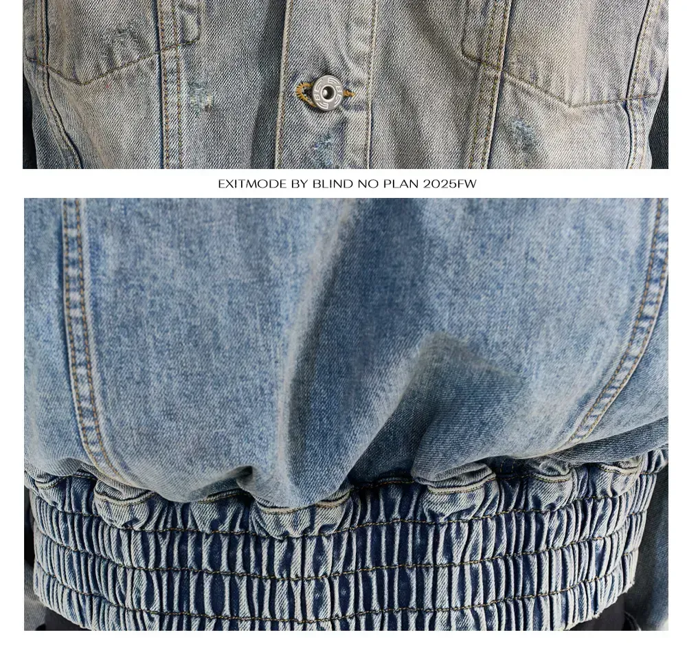 Design Details: Designed with a relaxed oversized silhouette, this jacket features a detachable fur trim at the hood and an adjustable Velcro hem. The body showcases a washed, distressed denim finish, while the detachable padded lining enhances practicality and all-season versatility.