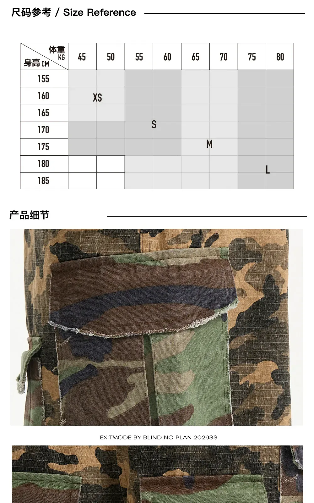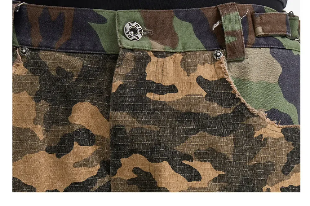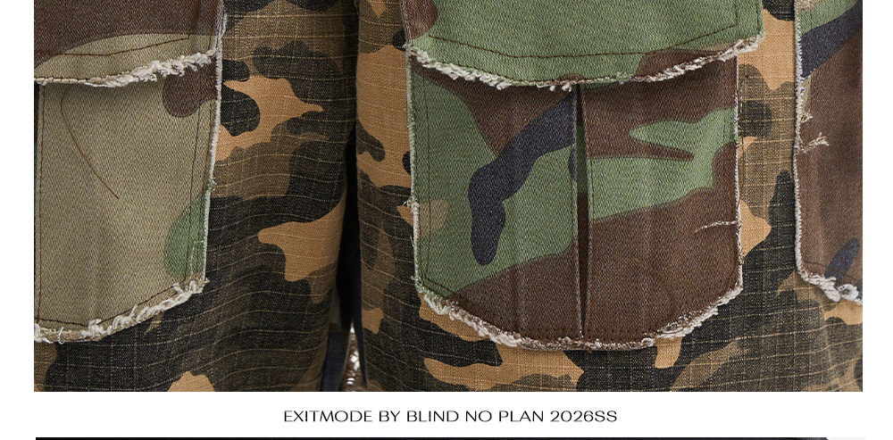 - Featuring a bootcut silhouette with two contrasting camouflage patterns in a color-block panel design. Raw-edge detailing on patch pockets and panel seams, finished with an all-over garment-washed and worn look for added visual depth.