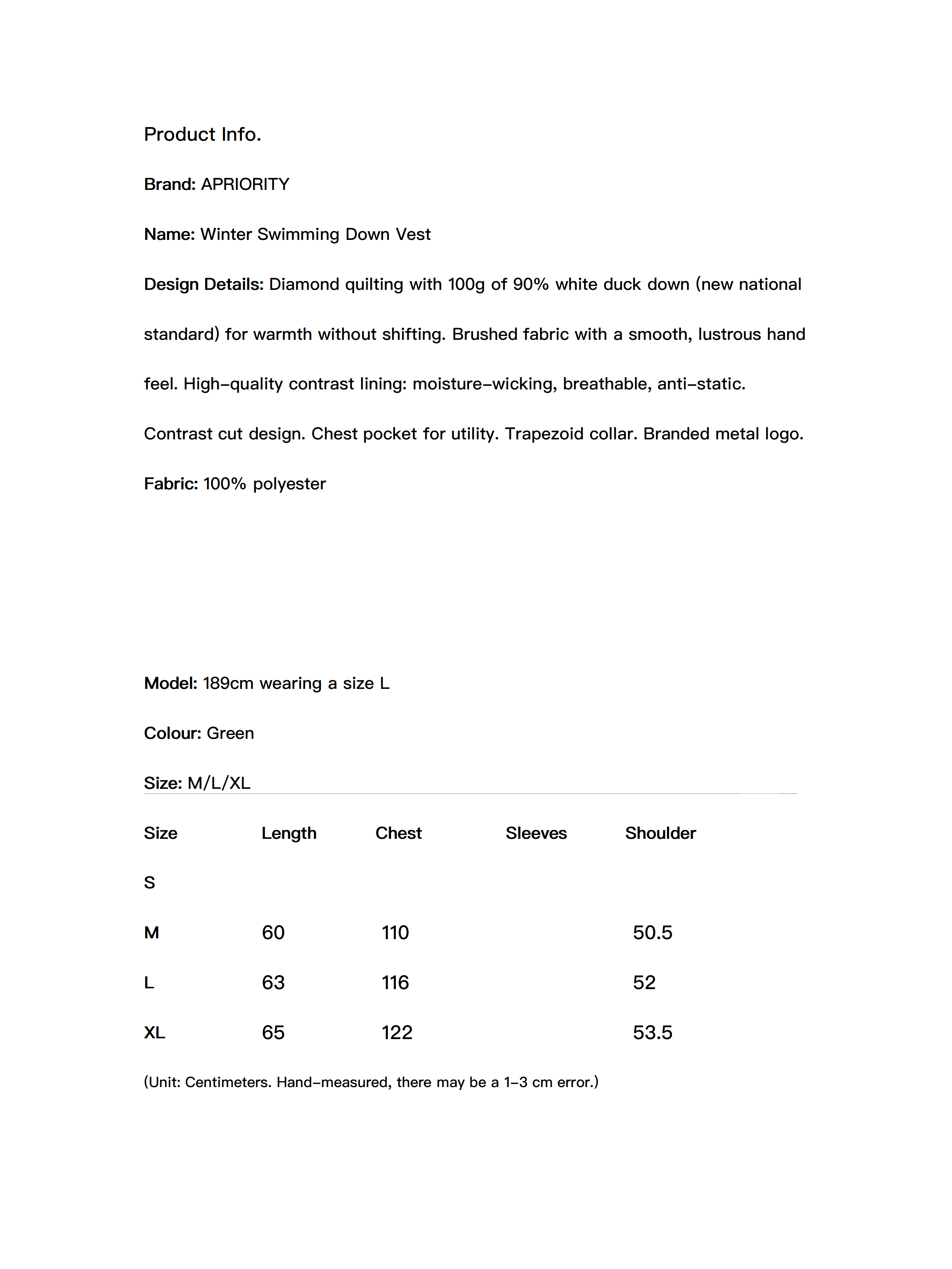 Diamond quilting with 100g of 90% white duck down (new national standard) for warmth without shifting. Brushed fabric with a smooth, lustrous hand feel. High-quality contrast lining: moisture-wicking, breathable, anti-static. Contrast cut design. Chest pocket for utility. Trapezoid collar. Branded metal logo.