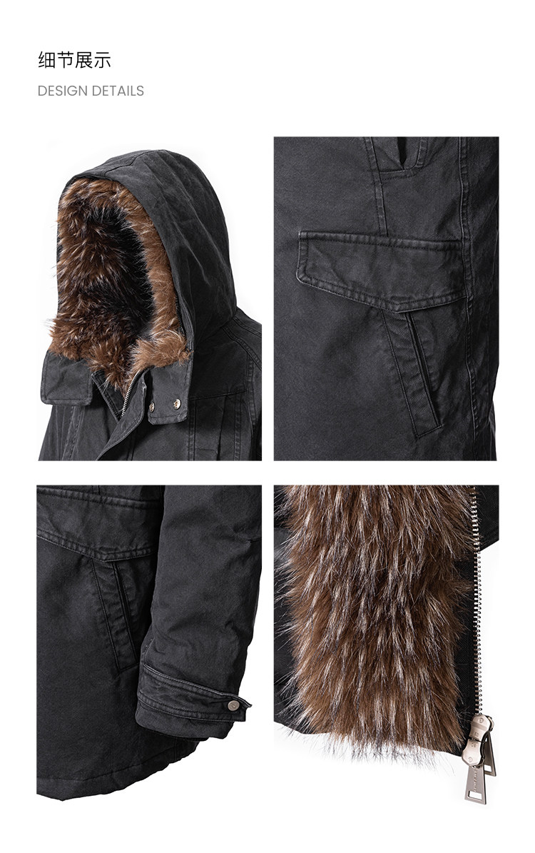 - The mid-length three-dimensional cut accommodates various body types. The extended hem increases coverage, providing extra space for warmth. The tapered cuffs help prevent heat loss while refining the arm silhouette, ensuring this "long warm style" remains sharp and non-bulky. The fluffy fur-lined hood securely protects the head and neck—its full, dense pile locks in heat and blocks cold wind, while visually elevating the workwear aesthetic with a luxe touch. Multi-dimensional pockets balance practical storage with stylistic layering, reinforcing the hardcore workwear vibe. The dual-opening zipper allows free adjustment of the closure—fully zipped for "sealed warmth" or partially open for "layered styling," balancing both temperature and style.